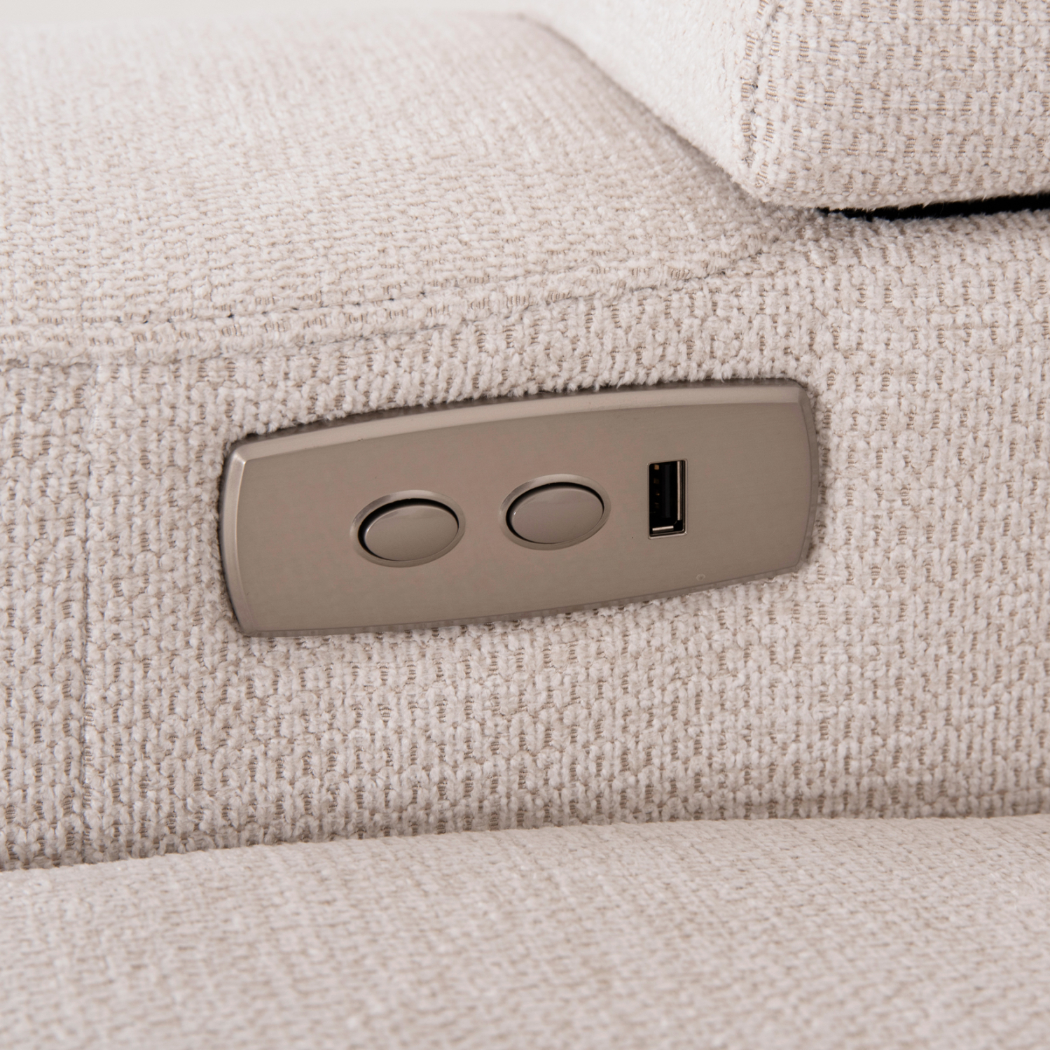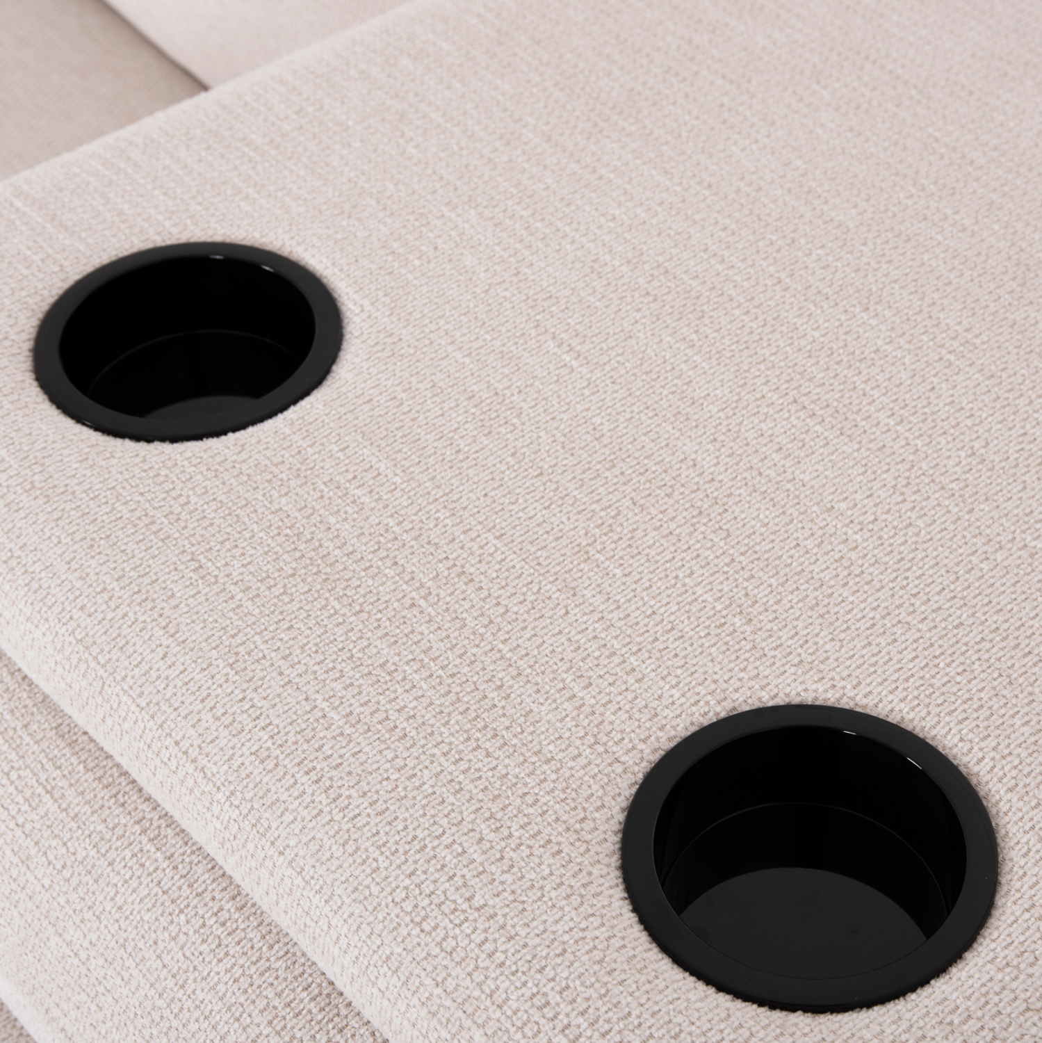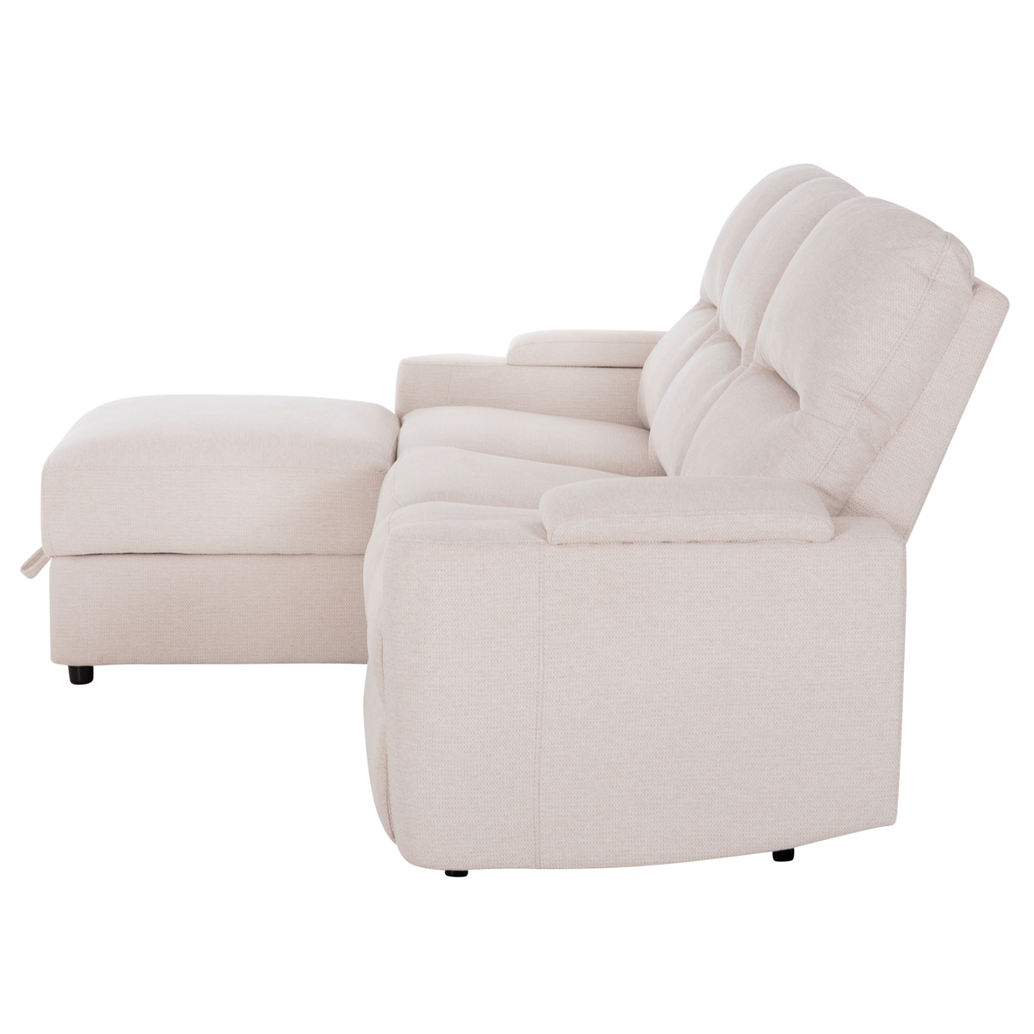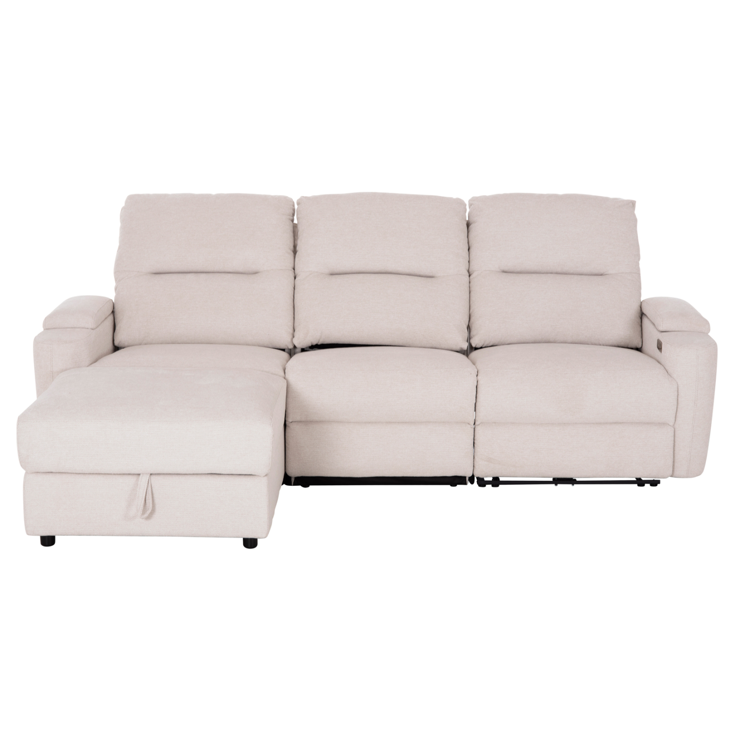 Τριθέσιος Αριστερός Γωνιακός Καναπές SYNTHIA– Μπεζ Ύφασμα, με Ηλεκτρικό Ανακλινόμενο Κάθισμα, Αποθηκευτικό Χώρο & Πτυσσόμενο Τραπέζι