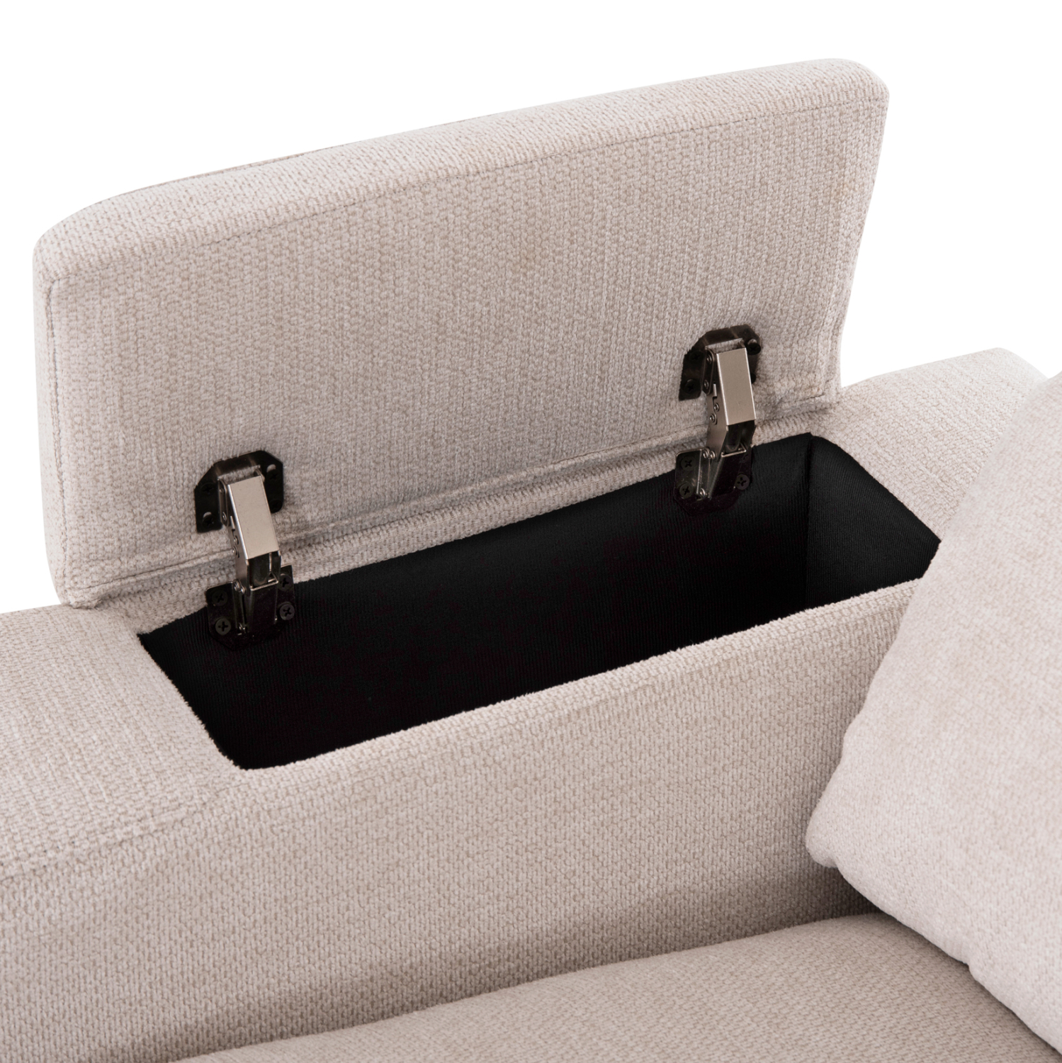 Η αριστερή πλευρά (σεζλόνγκ) περιλαμβάνει κρυφό αποθηκευτικό χώρο που ανοίγει ομαλά με μια κομψή λαβή, καθώς και έναν ακόμα αποθηκευτικό χώρο στο μπράτσο για επιπλέον πρακτικότητα.