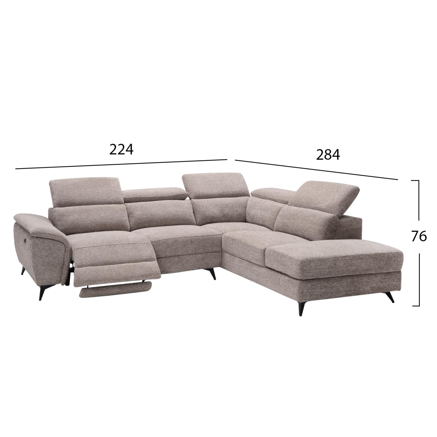 ΚΑΝΑΠΕΣ ΔΕΞΙΑ ΓΩΝΙΑ-ΑΝΑΚΛΙΣΗ & ΑΠΟΘ.ΧΩΡΟΣ-RESTRO HM3339.02R ΜΠΕΖ ΥΦΑΣΜΑ 284x224x76Υ