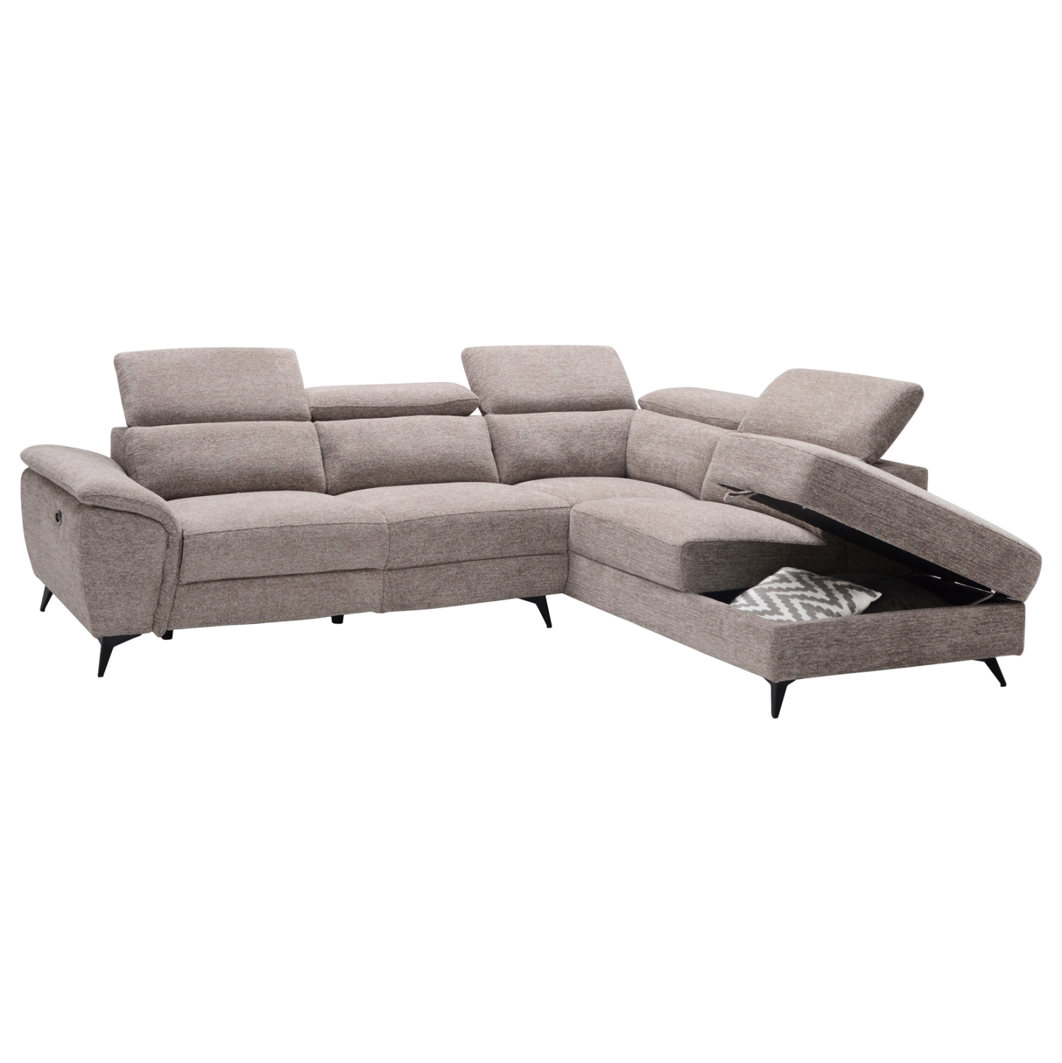 Ο γωνιακός καναπές RESTRO συνδυάζει προηγμένη λειτουργικότητα με σύγχρονη αισθητική, δημιουργώντας το απόλυτο σημείο χαλάρωσης για το σύγχρονο σαλόνι. Με μηχανισμό ανάκλισης πλάτης σε πέντε σημεία και ηλεκτρική ανάκλιση στην γωνιακή θέση μέσω ενός διακόπτη στο μπράτσο, προσφέρει εμπειρία άνεσης υψηλών προδιαγραφών, ενώ ο ενσωματωμένος αποθηκευτικός χώρος στο τελευταίο τμήμα της γωνίας ενισχύει τη λειτουργικότητά του, διατηρώντας τον χώρο οργανωμένο και κομψό.