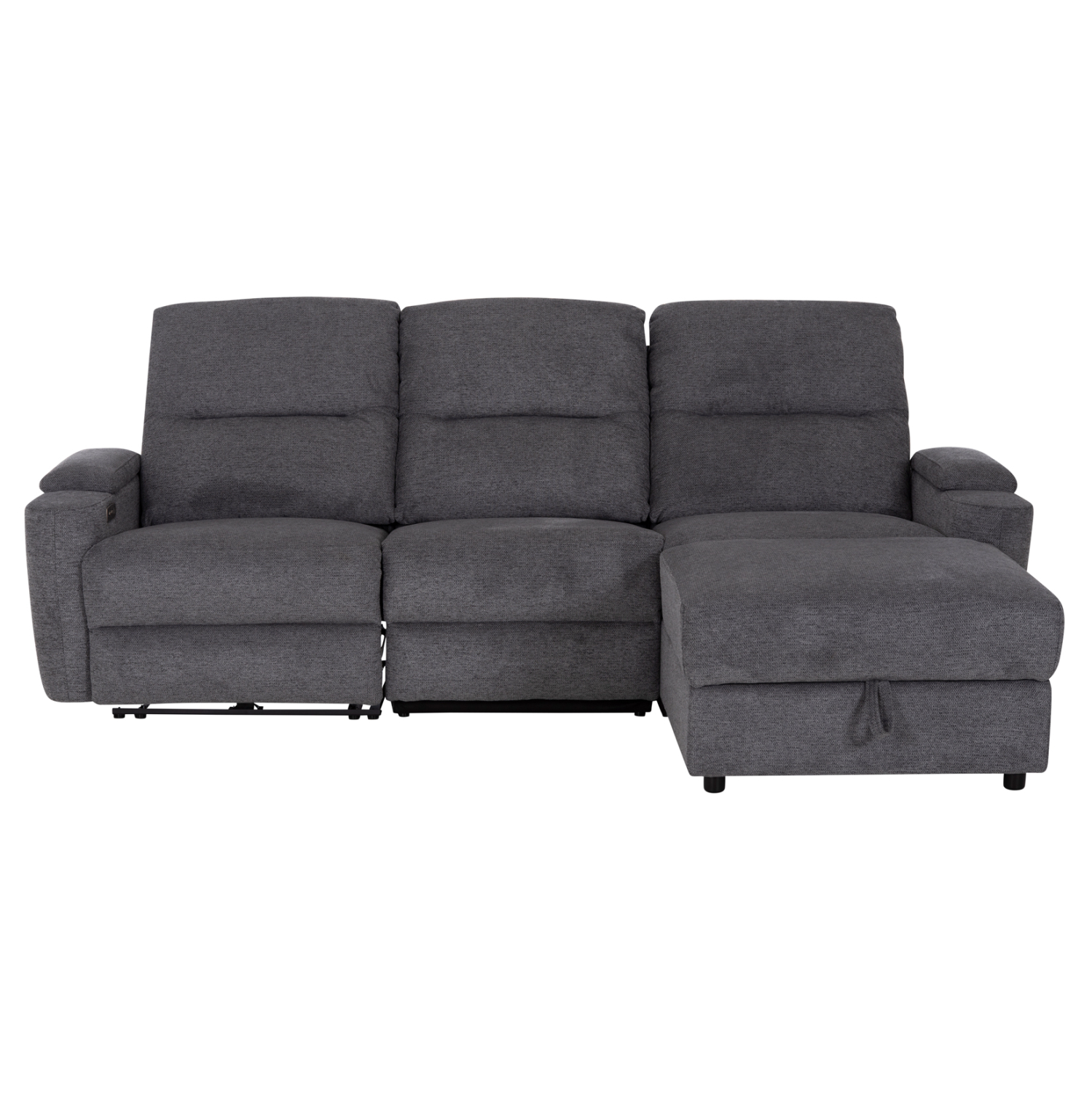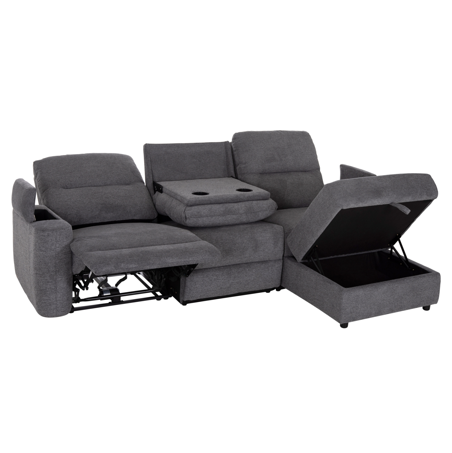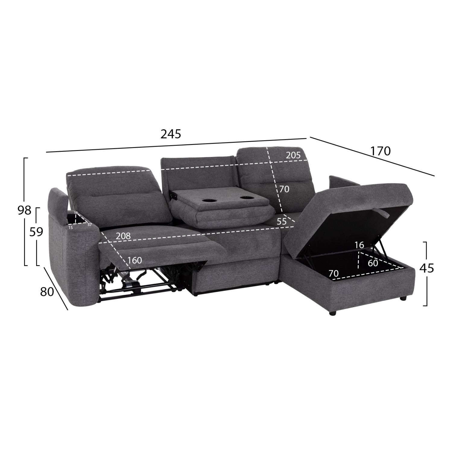 Τριθέσιος Δεξιός Γωνιακός Καναπές SYNTHIA– ΓΚΡΙ Ύφασμα, με Ηλεκτρικό Ανακλινόμενο Κάθισμα, Αποθηκευτικό Χώρο & Πτυσσόμενο Τραπέζι