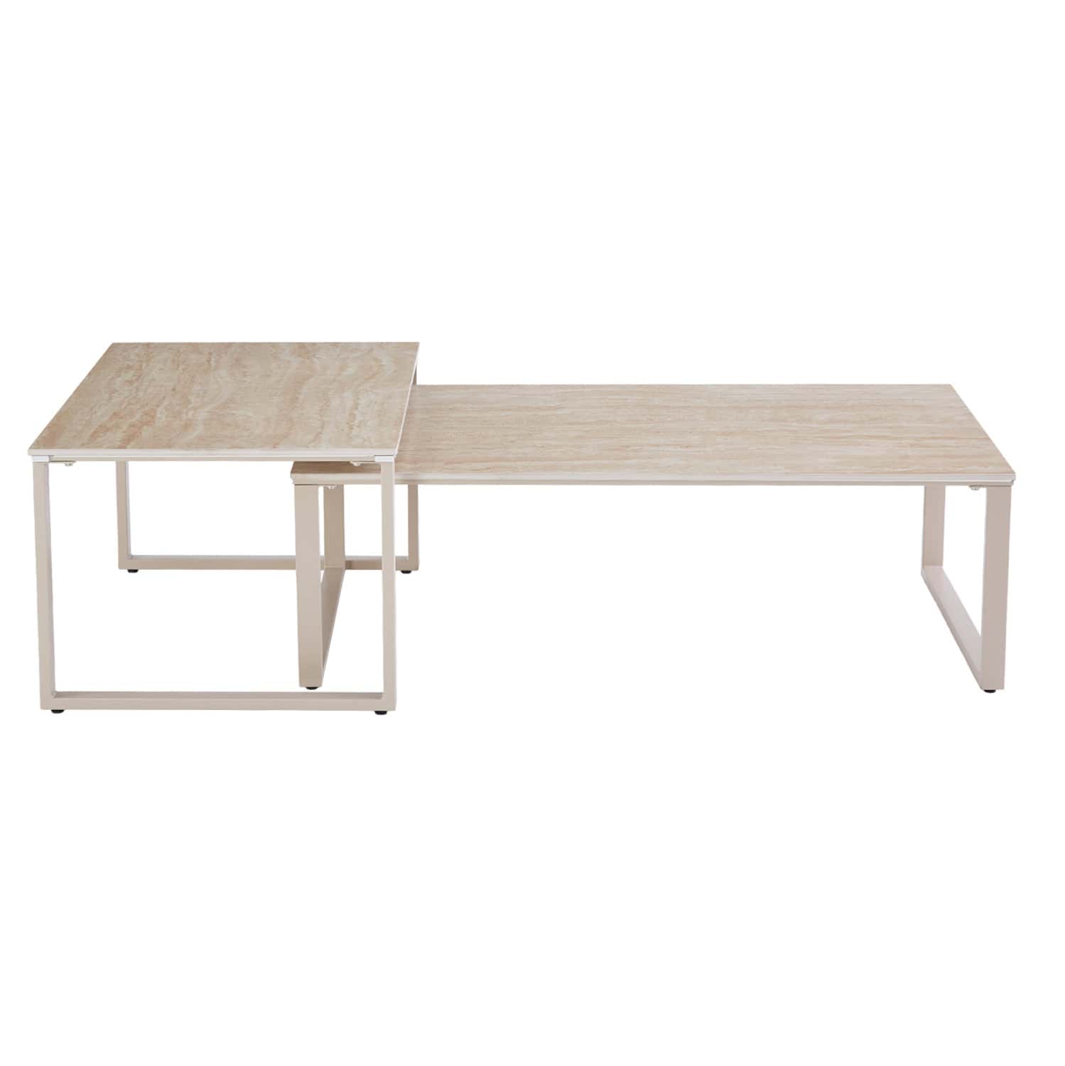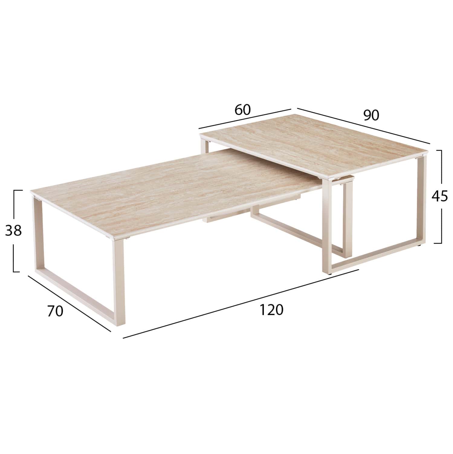 ΤΡΑΠΕΖΙ ΣΑΛΟΝΙΟΥ 2ΤΜΧ TERREN HM18365.02 ΜΠΕΖ ΠΟΔΙΑ–SINTERED STONE ΣΕ ΤΡΑΒΕΡΤΙΝΑ 120x70x45Υεκ