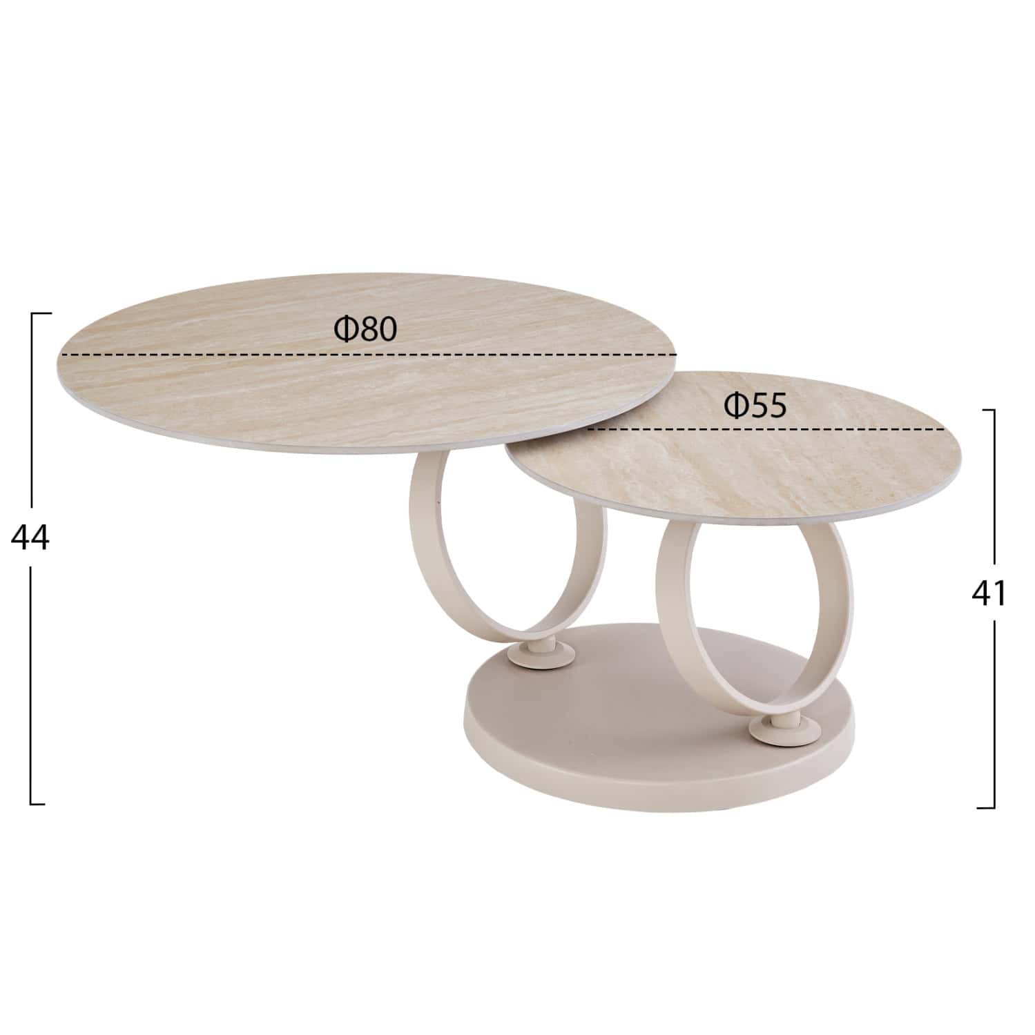 ΤΡΑΠΕΖΙ ΣΑΛΟΝΙΟΥ ΔΙΠΛΟ NUBISA HM18364.02 ΜΕΤΑΛΛΟ ΜΠΕΖ–SINTERED STONE Φ80Χ44Υεκ