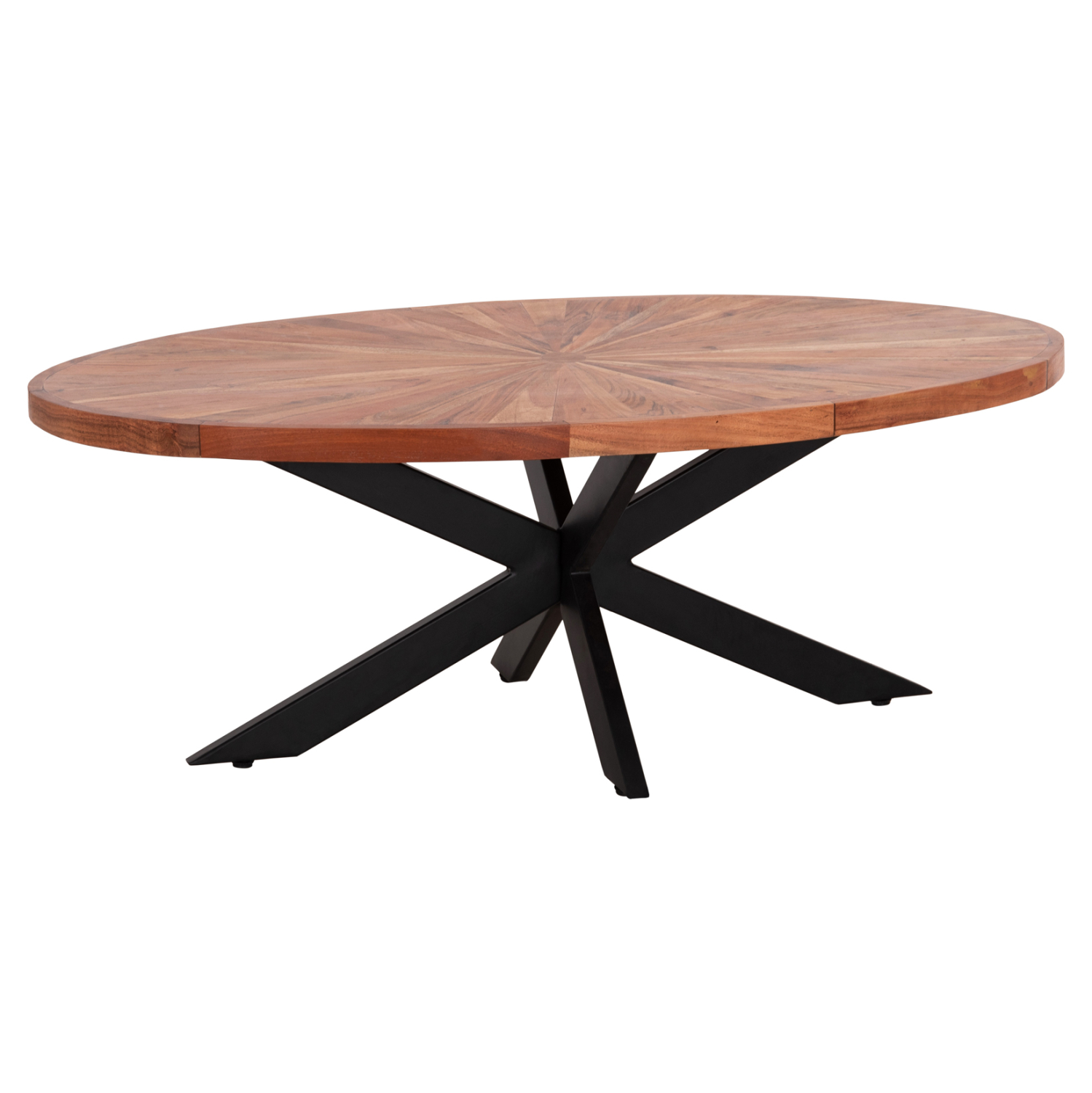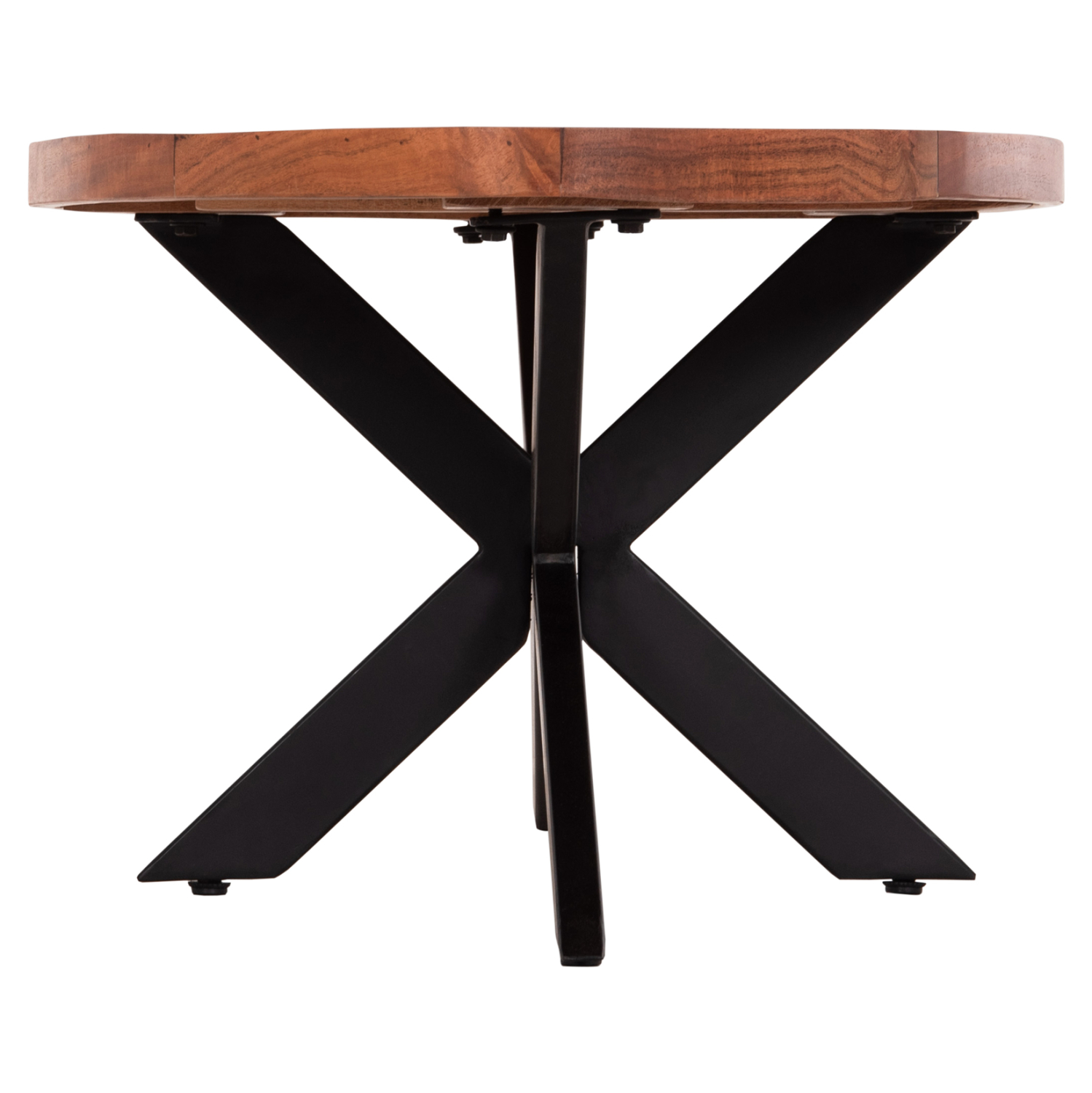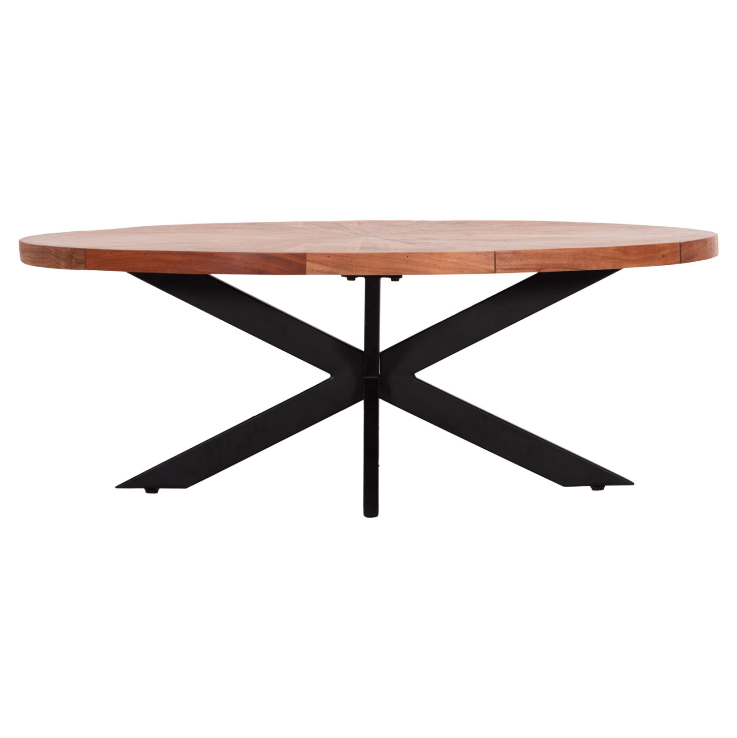 Ανακαλύψτε αυτό το μοναδικό οβάλ τραπέζι σαλονιού με επιφάνεια από φυσικό μασίφ ξύλο ΑΚΑΚΙΑΣ σε ΦΥΣΙΚΟ χρώμα. Διαθέτει πόδια σε όμορφη χιαστί διάταξη σε ΜΑΥΡΟ χρώμα. Το μοντέρνο design συναντά την φύση και δίνει μια διαχρονική και ζεστή αίσθηση στον χώρο σας, ενώ ταυτόχρονα αποτελεί κι ένα έπιπλο ανώτερης ποιότητας και συμβολισμού.