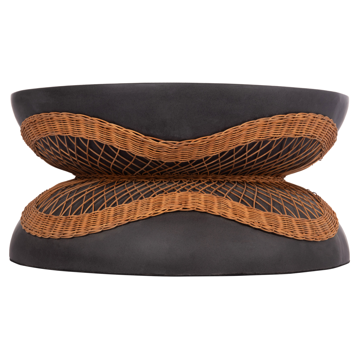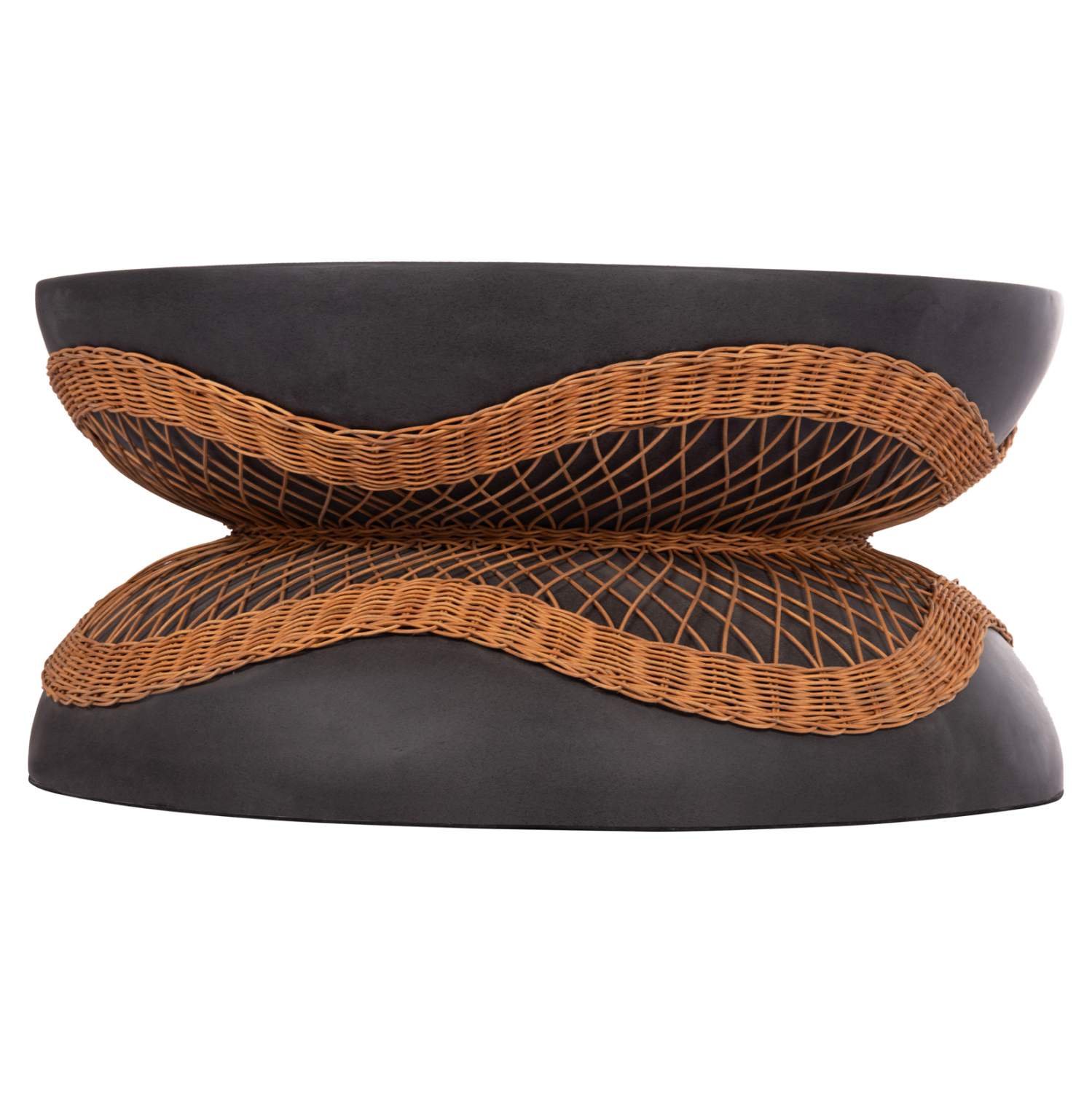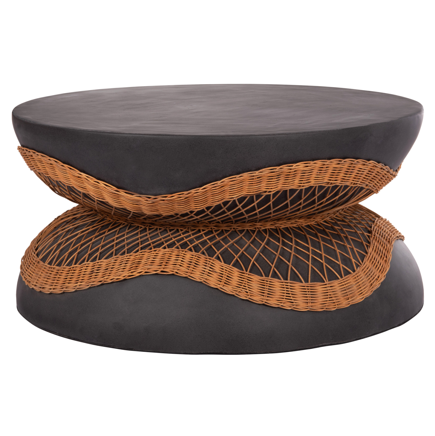 ΤΡΑΠΕΖΙ ΣΑΛΟΝΙΟΥ ΣΤΡΟΓΓΥΛΟ ANNA HM18157.01 FIBER CEMENT ΣΕ ΜΑΥΡΟ-ΦΥΣΙΚΟ RATTAN–Φ92×44.5Υεκ.