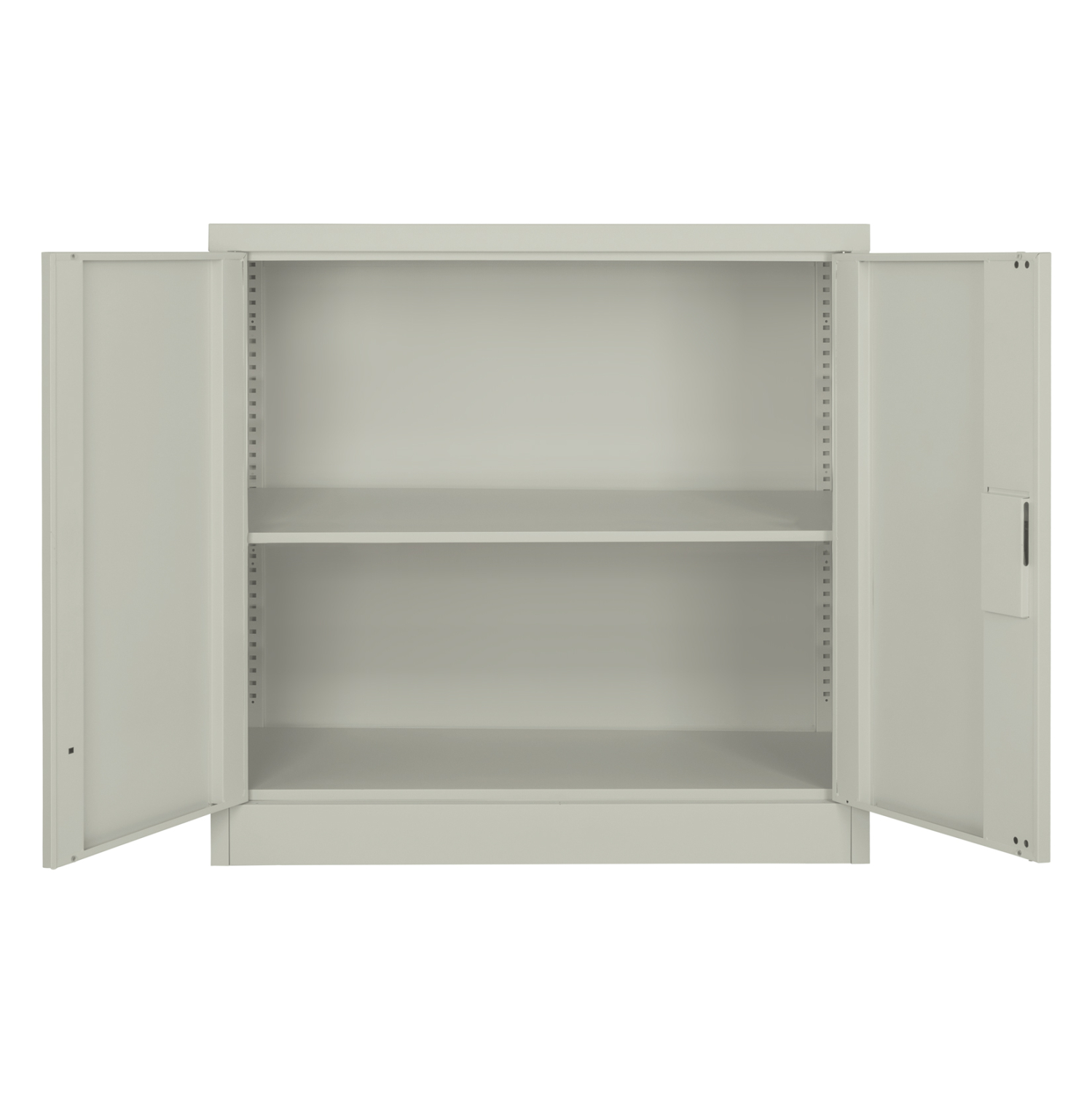 Η ΗΜ5960.01 είναι μια πρακτικότατη κοντή μεταλλική ντουλάπα που έχει φτιαχτεί με γνώμονα την χωρητικότητα για το μέγεθός της και την ανθεκτικότητα. Είναι δίφυλλη με τις δύο πόρτες να κλείνουν ακριβώς στην μέση της κατασκευής, ενώ το εσωτερικό είναι ένας ενιαίος χώρος χωρίς κάθετα χωρίσματα. Διαθέτει 1 ρυθμιζόμενο ράφι που δημιουργεί 2 αποθηκευτικούς χώρους. Οι πόρτες διαθέτουν κλειδαριά που κλειδώνει με κλειδί, ενώ το χρώμα της ντουλάπας είναι πολύ ανοιχτό γκρι.