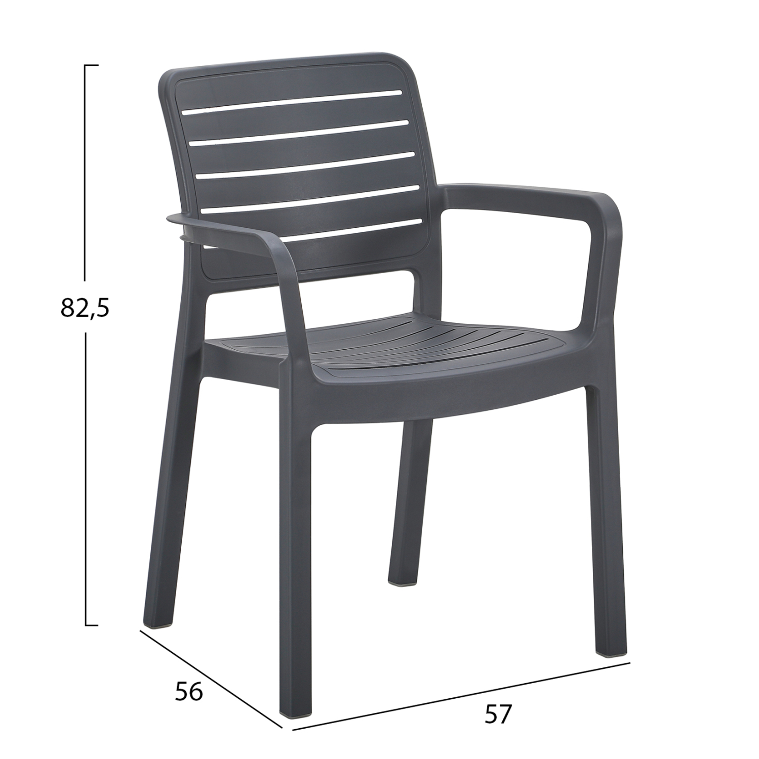 Η πολυθρόνα FLAN είναι μια κλασσική πολυθρόνα εξωτερικού χώρου που θα καλύψει κάθε σας ανάγκη στην αυλή ή το μπαλκόνι σας. Είναι ποιοτική και κομψή στην όψη, ενώ τα σχετικά ψηλά της μπράτσα την καθιστούν αναπαυτικότατη. Όλη η πολυθρόνα είναι από πολυπροπυλένιο σε ΓΚΡΙ χρώμα. Είναι στοιβαζόμενη, ελαφριά και άνετη, ιδανική επιλογή και για επαγγελματική χρήση, όπως σε catering κτλ.