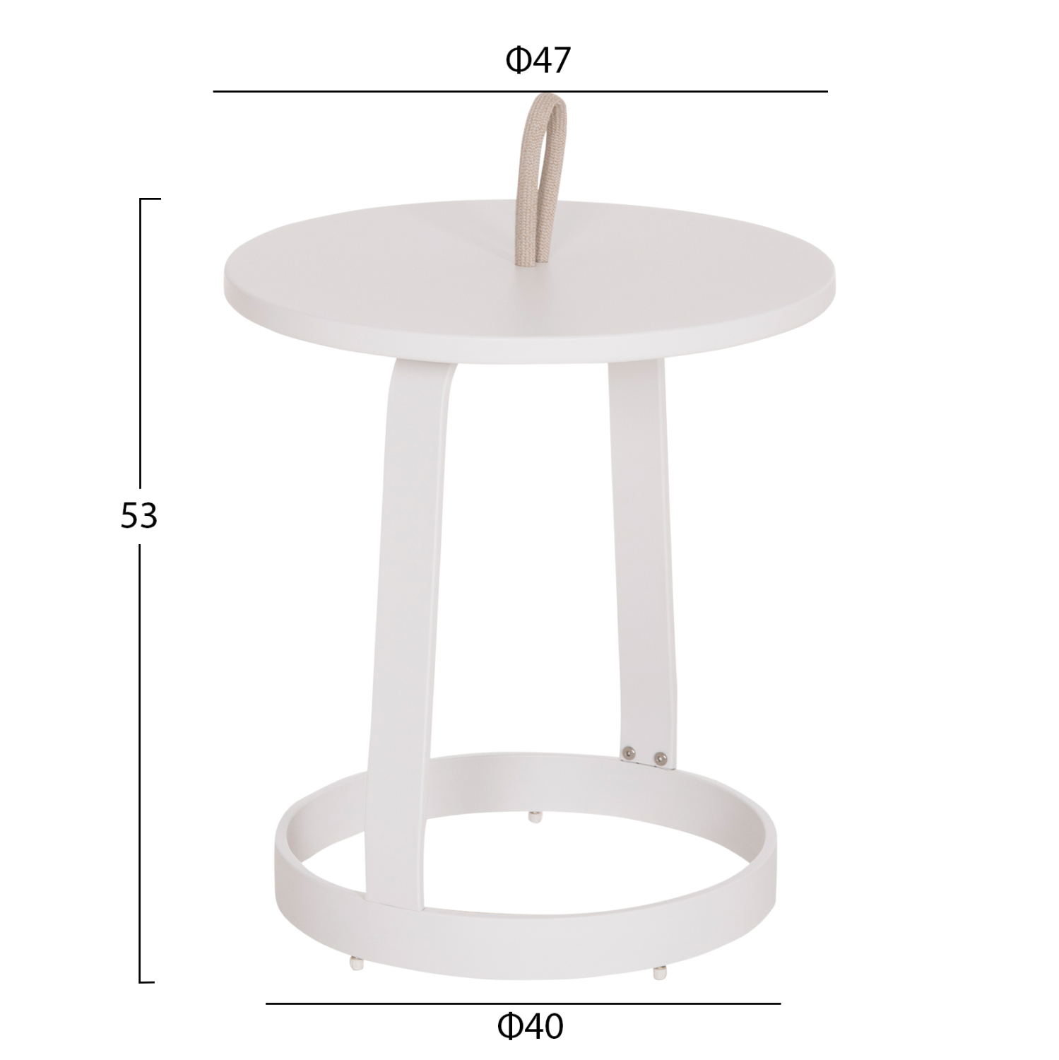 Βοηθητικό Στρογγυλό Τραπεζάκι Εξωτερικού Χώρου MINO | Αλουμίνιο & Σχοινί — ΛΕΥΚΟ
