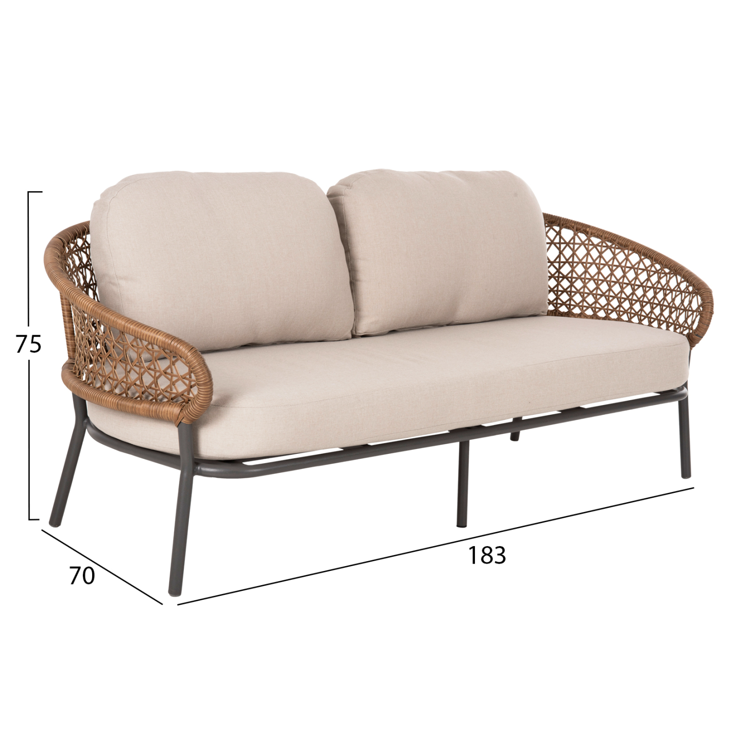 Διαστάσεις καναπέ: 183x70x75Υ εκ.