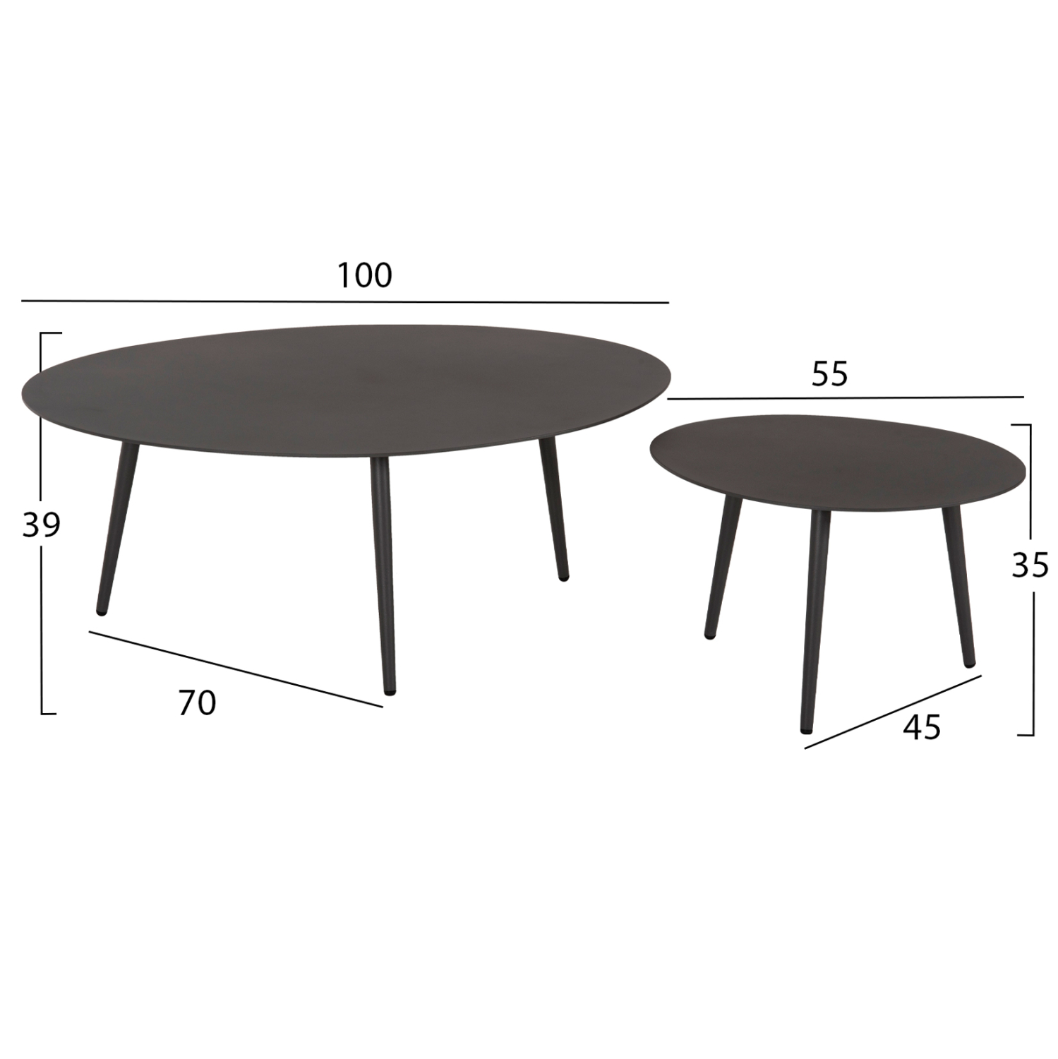 Διαστάσεις τραπεζιού μεγάλου: 100x70x39Υ εκ.