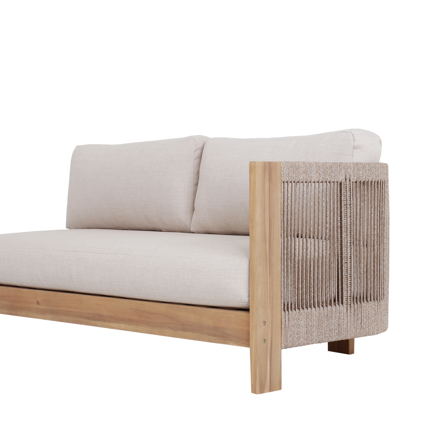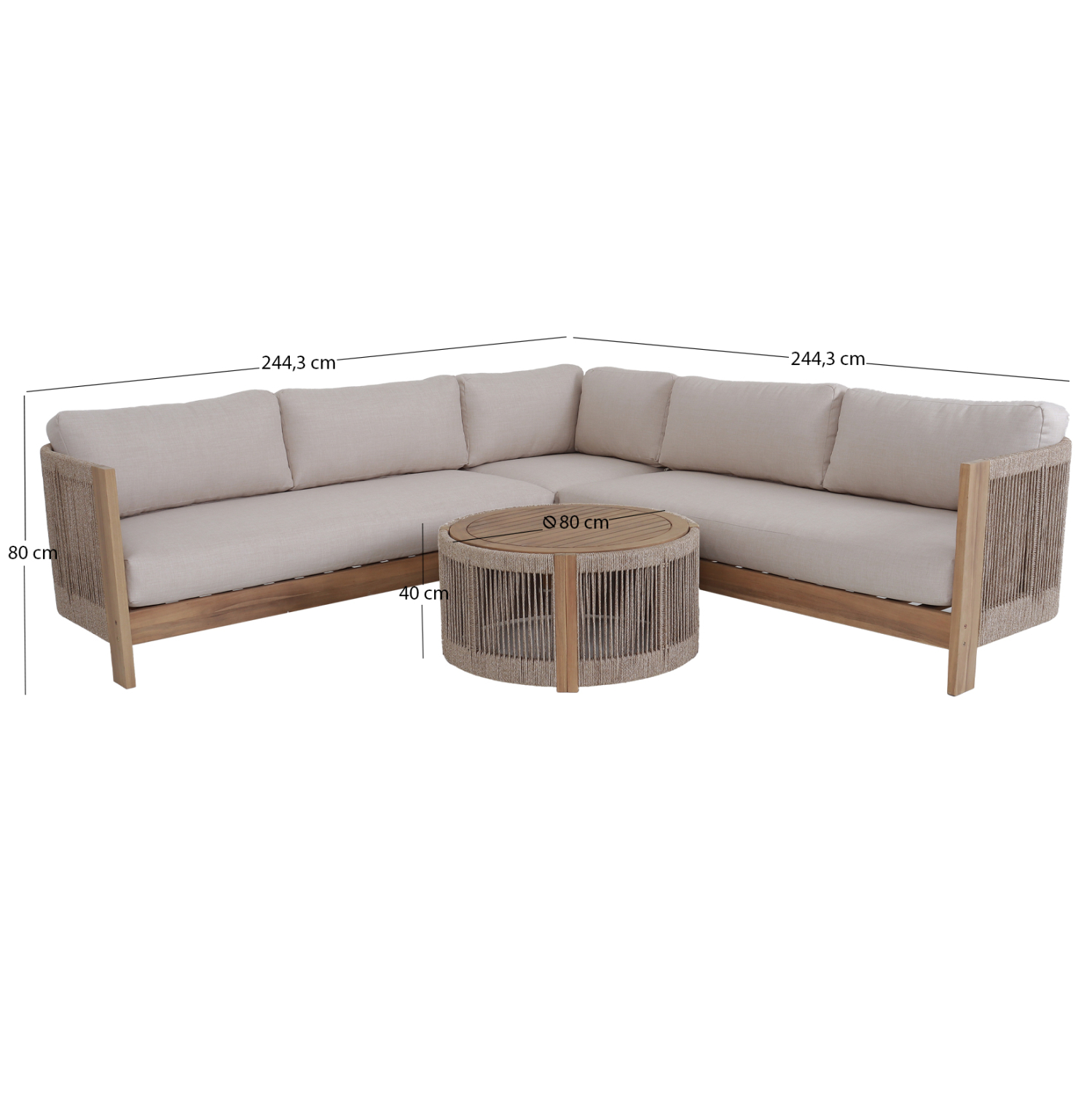 Το σετ γωνιακού καναπέ εξωτερικού χώρου ODYSSEY είναι η επιτομή της πολυτέλειας συνδυασμένης με απαράμιλλη ποιότητα. Αποτελείται από δύο 2-θέσιους καναπέδες, μία γωνία για να δέσει το σύνολο, και ένα στρογγυλό τραπεζάκι. Ο σκελετός είναι από ξύλο ακακίας σε ΦΥΣΙΚΟ χρώμα με μαξιλάρια σε ΜΠΕΖ χρώμα, ενώ η επένδυση με σχοινί στους καναπέδες και στο τραπεζάκι δίνει μια ακόμα πιο «ζεστή» εικόνα στο σύνολο. Η αισθητική και τα γήινα χρώματα κάθε σπιθαμής αυτού του σετ, θα ταιριάξουν σε κάθε χώρο.