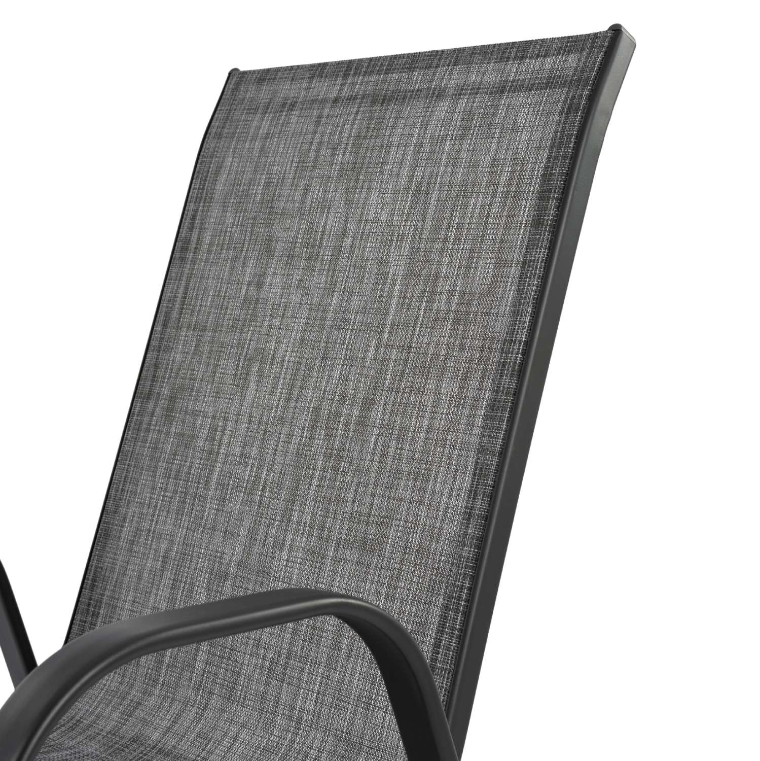 Δύο πολυθρόνες εξωτερικού χώρου από μεταλλικό σκελετό σε γκρι χρώμα με textilene 2×1 μεγάλης αντοχής σε ήλιο και βροχή.