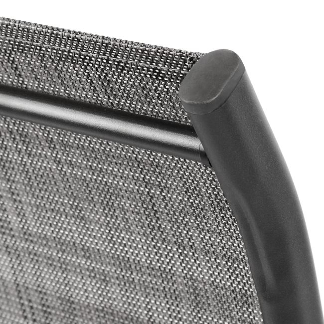 Δύο πολυθρόνες εξωτερικού χώρου από μεταλλικό σκελετό σε γκρι χρώμα με textilene 2×1 μεγάλης αντοχής σε ήλιο και βροχή.