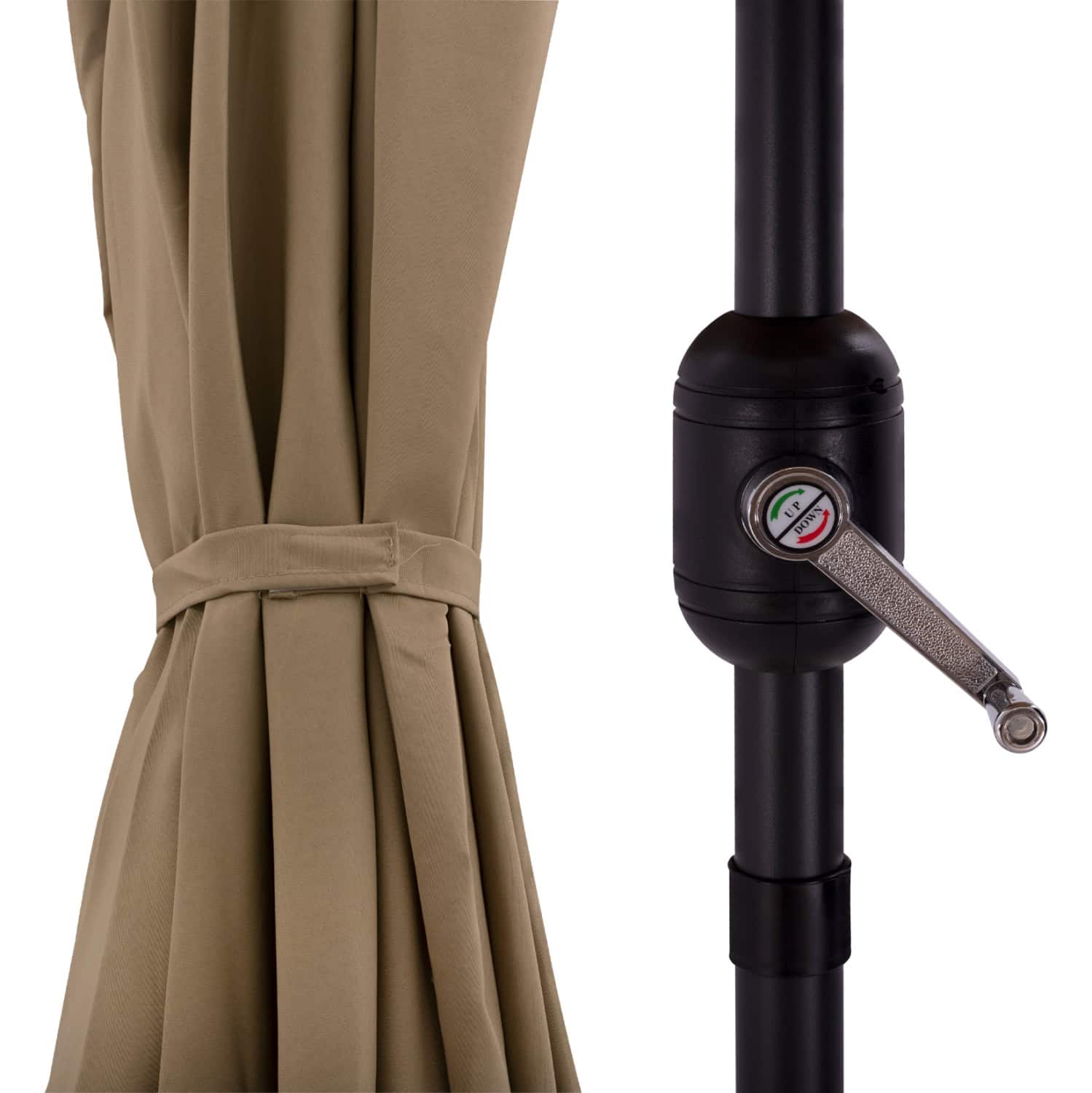 -Η ομπρέλα είναι ανακλινόμενη και διαθέτει αναβατόριο για εύκολο άνοιγμα και κλείσιμο, αλλά και αεραγωγό για καλύτερη κυκλοφορία του αέρα.