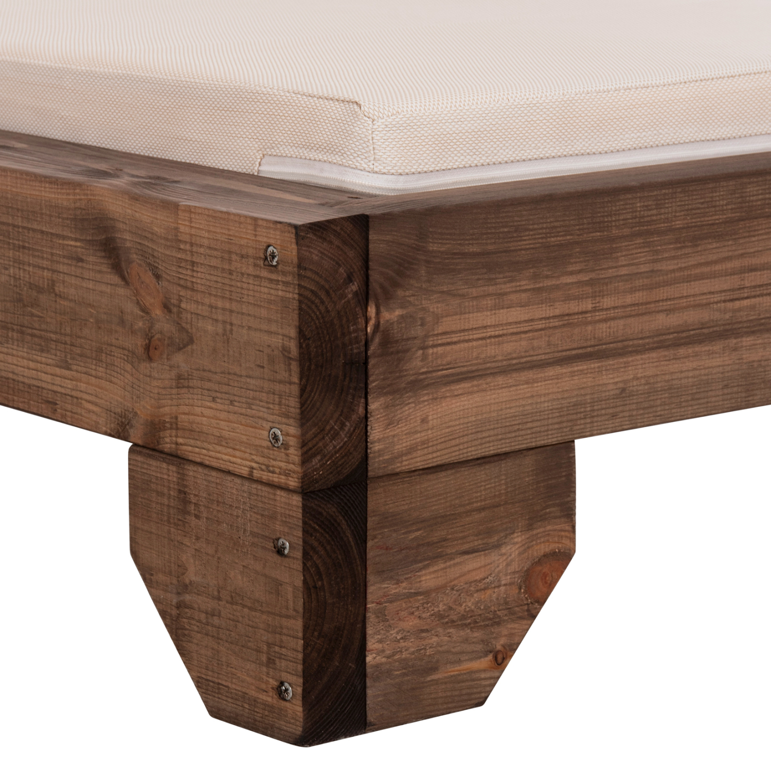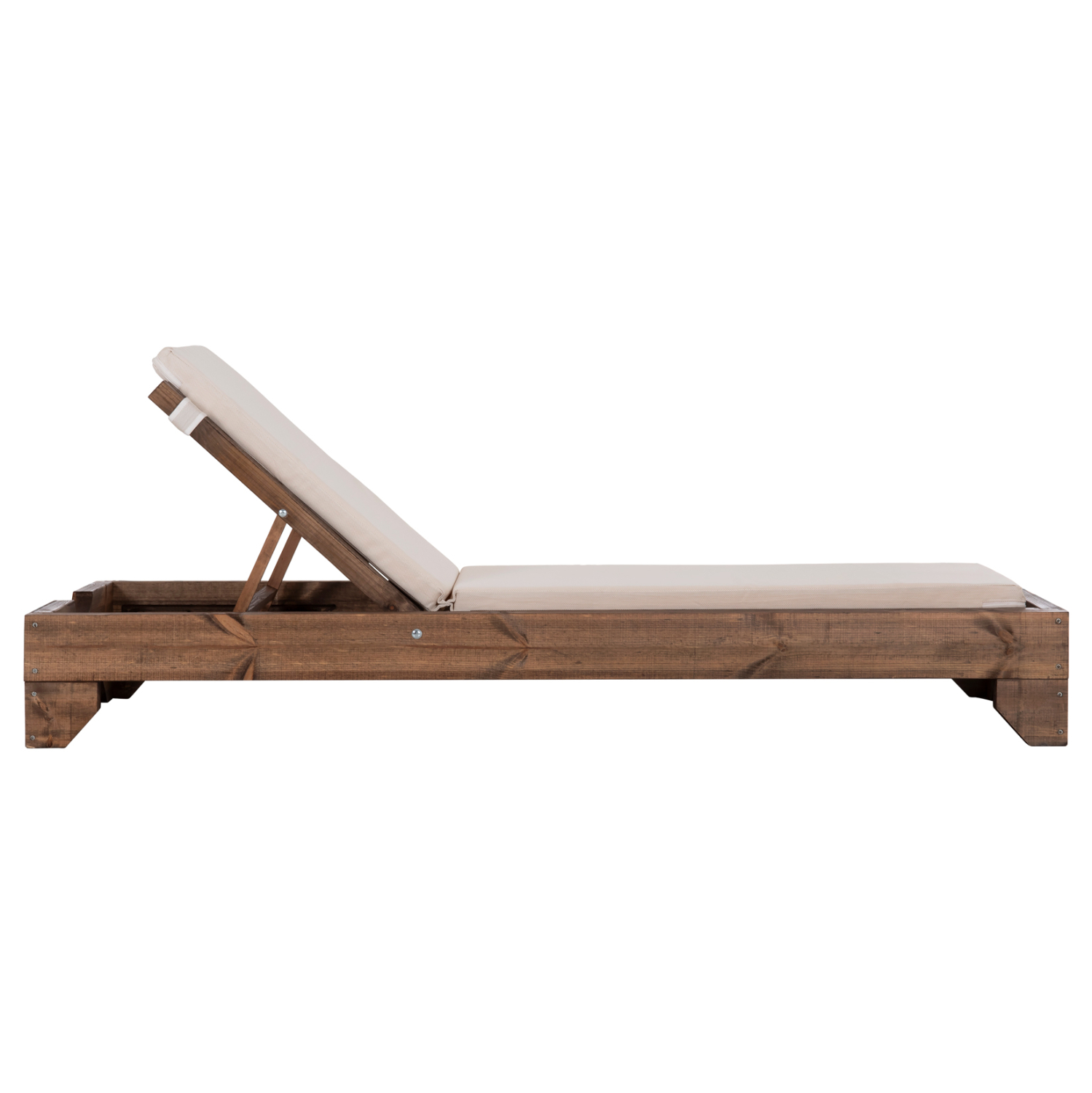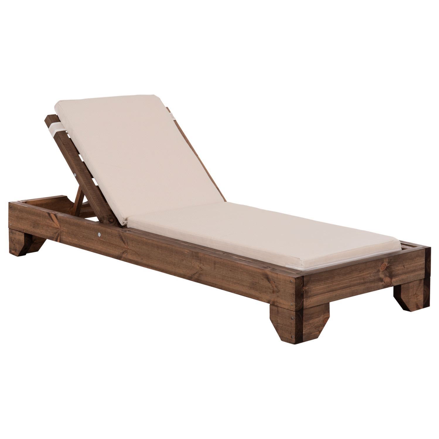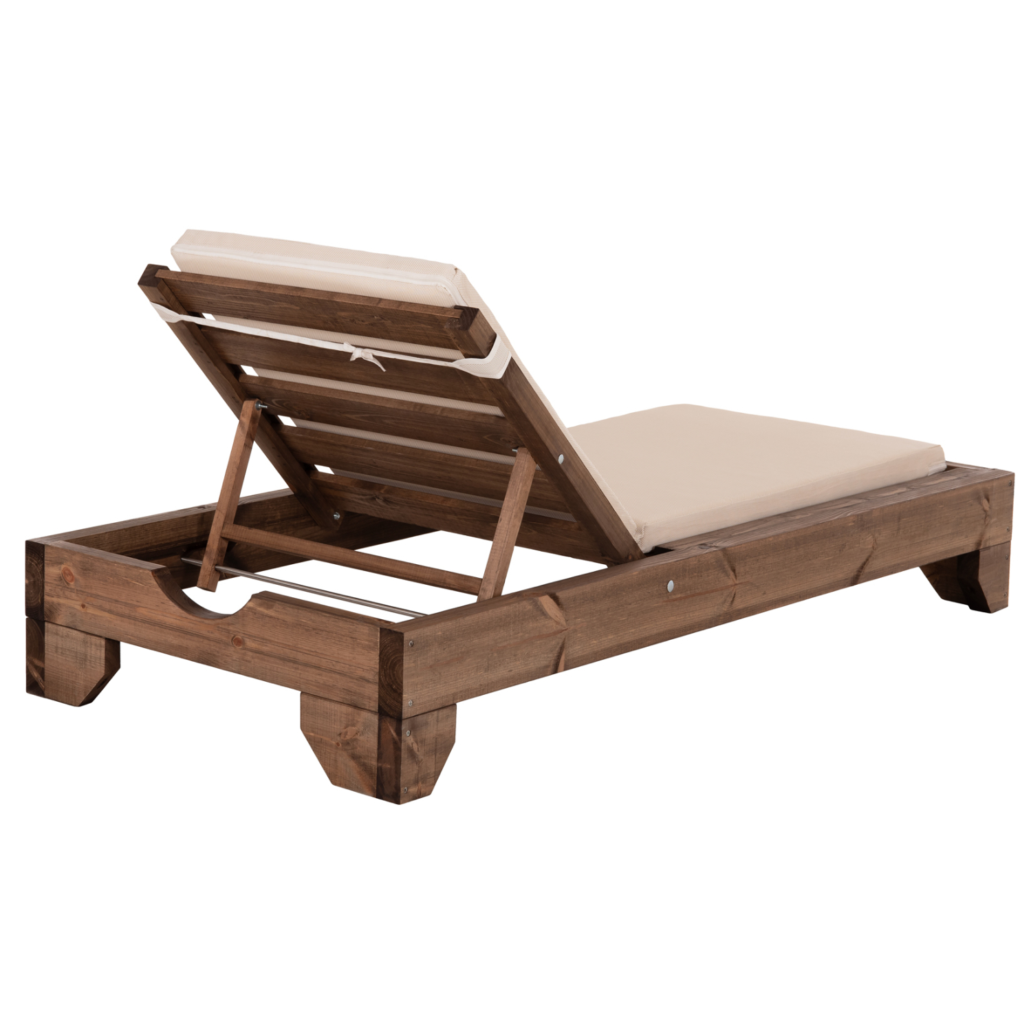 -Ολόκληρη η ξαπλώστρα έχει κατασκευαστεί από ξύλο πεύκου με εμποτισμό και επιπλέον στρώση με βερνίκι νερού. Το πεύκο είναι ένα μαλακό, λευκό ή ανοιχτό κίτρινο ξύλο το οποίο είναι ελαφρύ σε βάρος με ευθύγραμμα νερά ξύλου. Αντέχει στη συρρίκνωση, διόγκωση και κάμψη. Ο εμποτισμός υπό την ευρεία έννοια είναι ο χρωματισμός του ξύλου (συνήθως βερνίκια) με την μέθοδο της εμβάπτισης.