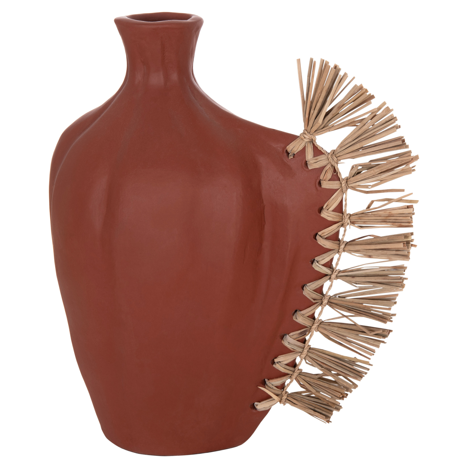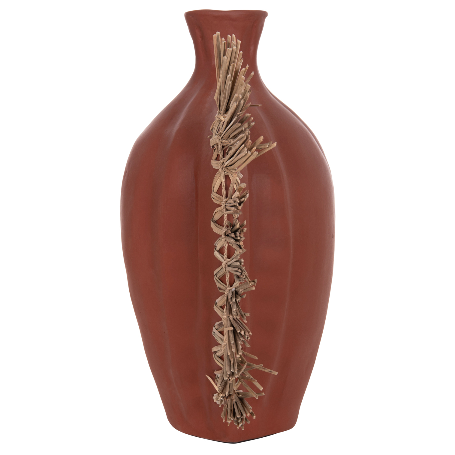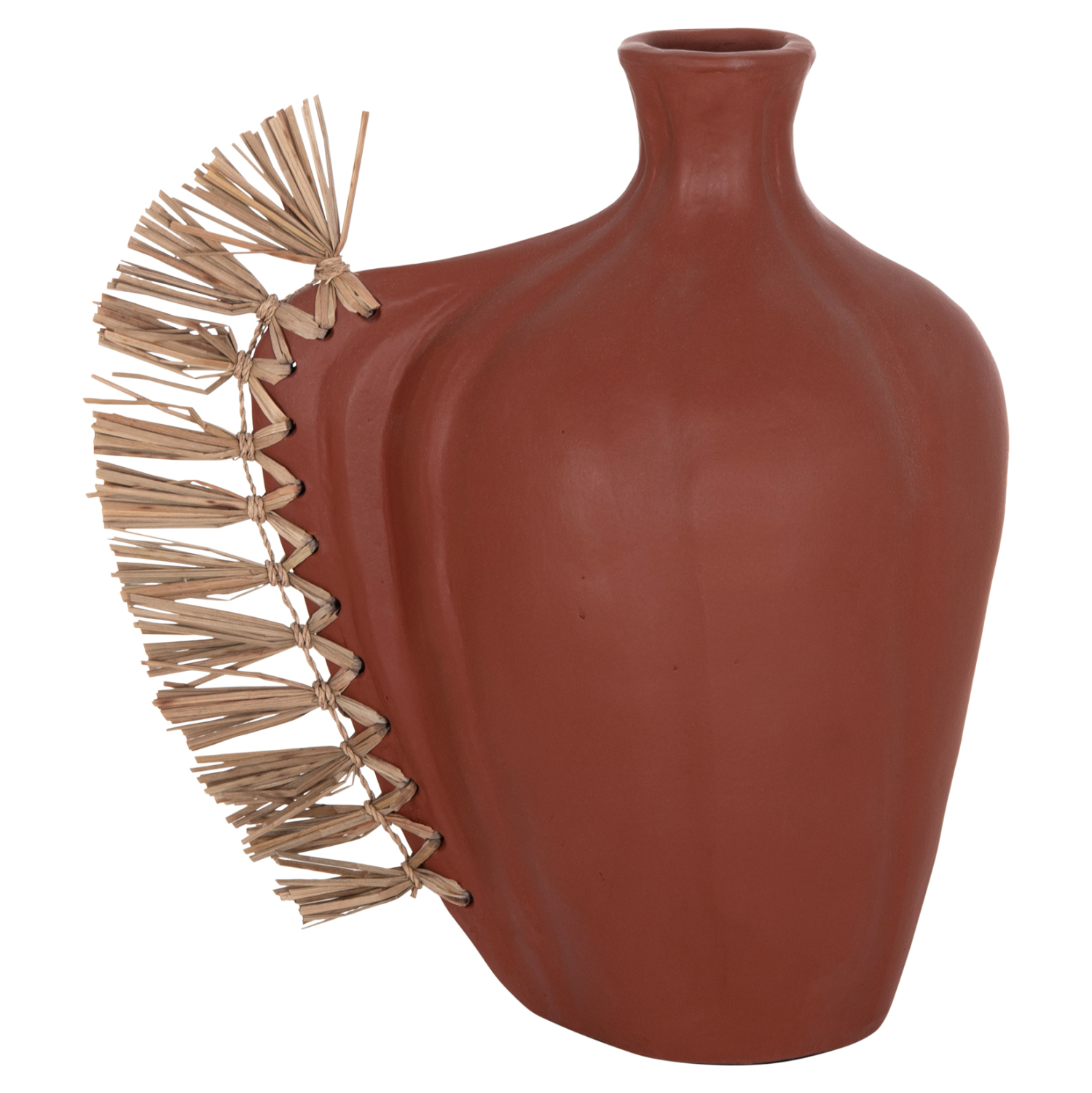 Το επιτραπέζιο χειροποίητο διακοσμητικό βάζο JEBB διαθέτει στενό στόμιο και είναι ένα πολύ ιδιαίτερο διακοσμητικό στοιχείο για κάθε χώρο. Ακολουθώντας την τελευταία τάση στην εσωτερική διακόσμηση, είναι κατασκευασμένο εξολοκλήρου από σχεδόν σαγρέ τερακότα στο ΦΥΣΙΚΟ της χρώμα, ενώ στην μία πλευρά διαθέτει διακόσμηση με αποξηραμένο grass.