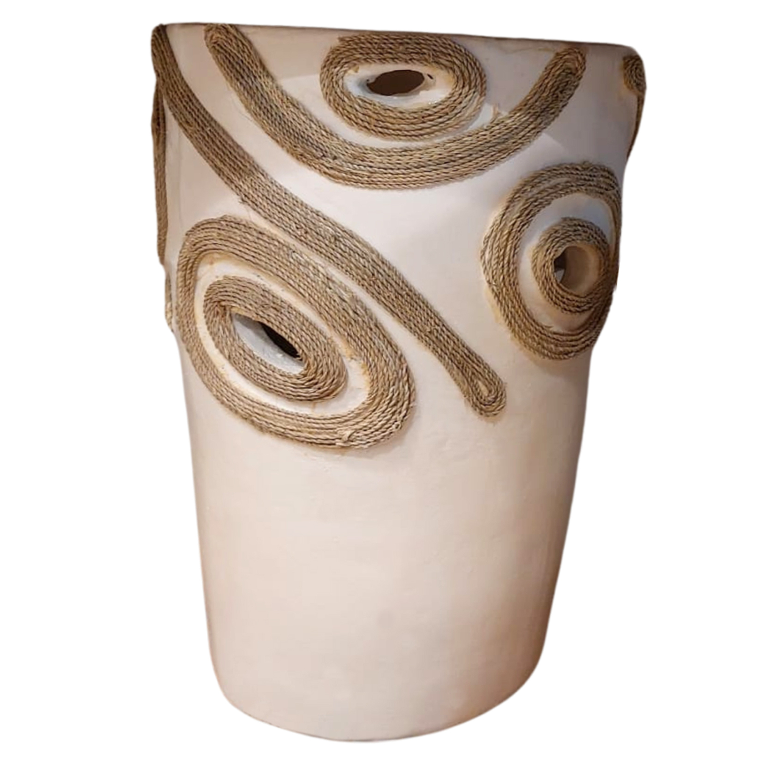 Το επιτραπέζιο χειροποίητο διακοσμητικό βάζο DEAN είναι λιτό σε κλασσικό σχέδιο. Είναι κατασκευασμένο εξολοκλήρου από τερακότα σε ΚΡΕΜ χρώμα ενώ διαθέτει διακοσμητικά σχέδια με σχοινί από ίνες φοίνικα κολλημένο στις πλευρές του βάζου. Ιδανικό για πληθώρα χώρων, τόσο για το σπίτι, όσο και για επαγγελματικούς χώρους.