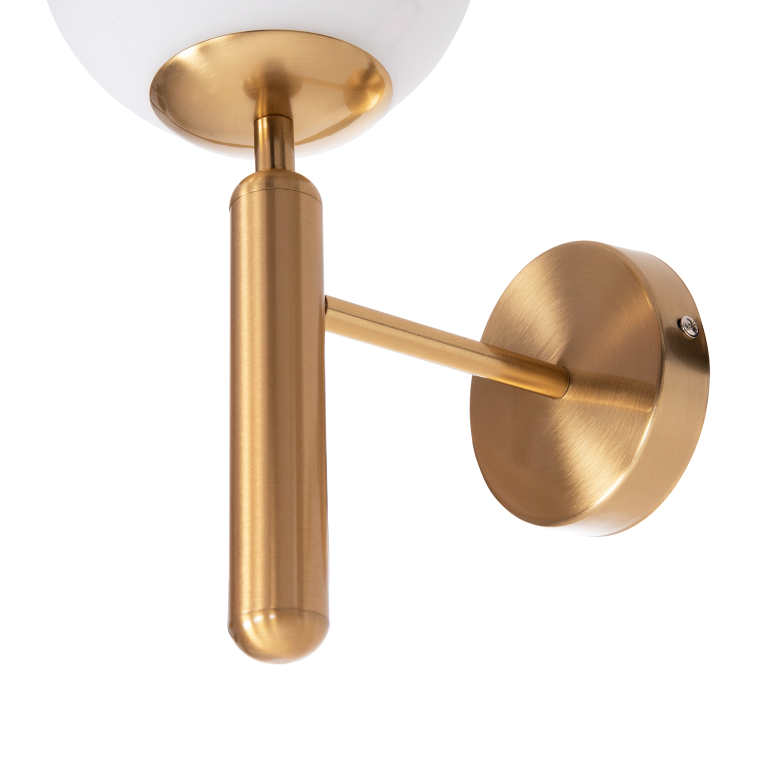 Η απλίκα τοίχου HOMY έχει μεταλλική βάση σε ΧΡΥΣΟ χρώμα και γυάλινο γλόμπο. Ο βραχίονας είναι ρυθμιζόμενος ως προς την κατακόρυφη κατεύθυνση του γλόμπου.