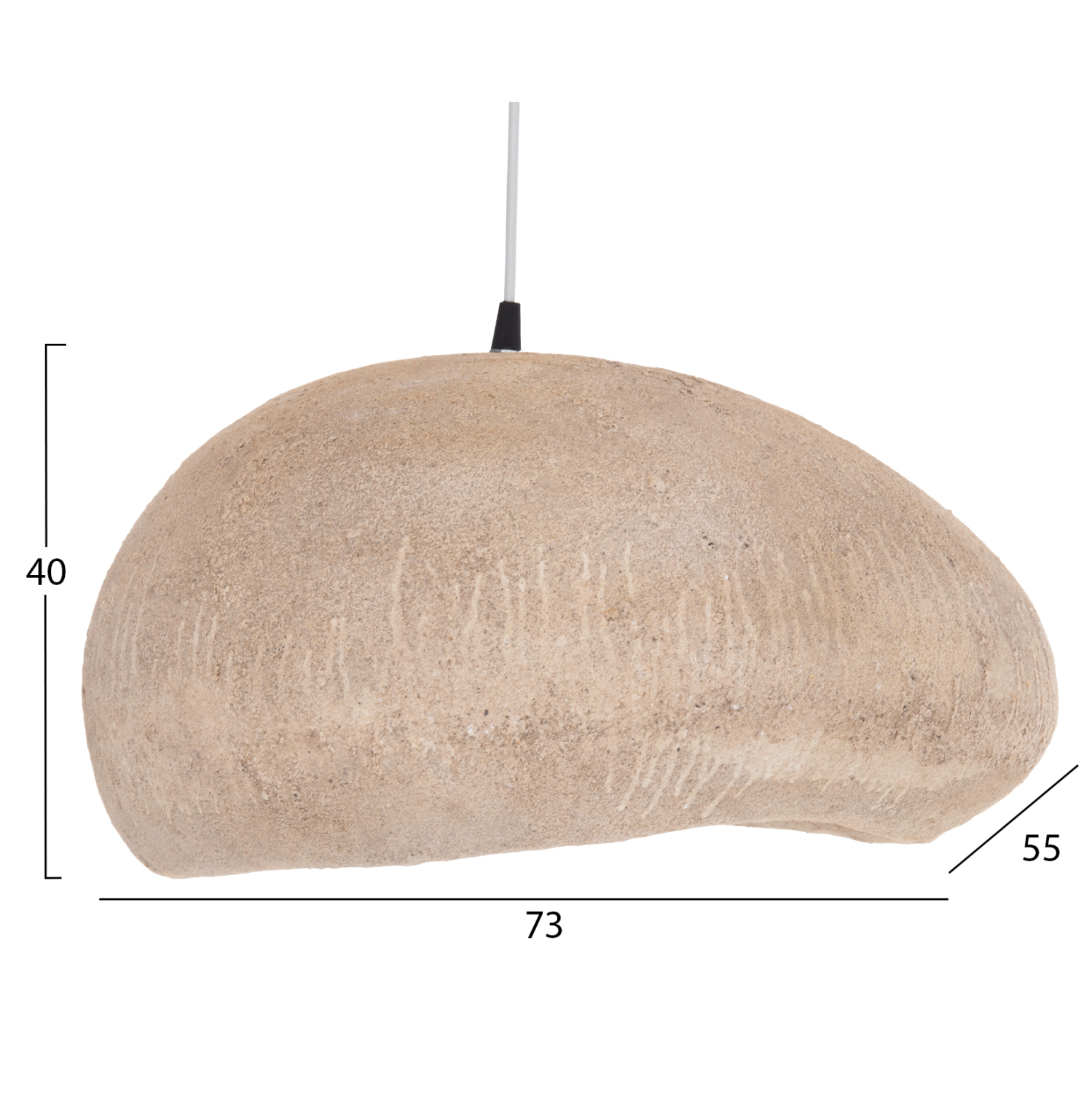 Αυτό το κρεμαστό φωτιστικό οροφής σε σχήμα πέτρας είναι κατασκευασμένο από RESIN(ΡΗΤΙΝΗ) υλικό σε σκούρο μπεζ χρώμα και διαχέει τον φωτισμό απαλά στο χώρο, δημιουργώντας μια όμορφη ατμόσφαιρα. Αποτελεί κυρίως διακοσμητικό στοιχείο στον χώρο και απαιτεί ανάλογο περιβάλλον.