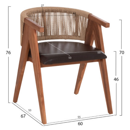 ΠΟΛΥΘΡΟΝΑ ΤΡΑΠΕΖΑΡΙΑΣ BRANN HM18238.11 ΞΥΛΟ ΤΕΑΚ-ΚΑΦΕ PU-ΣΧΟΙΝΙ 60x67x76Υεκ. Πολυθρόνα Τραπεζαρίας BRANN Η BRANN είναι μια premium πολυθρόνα τραπεζαρίας που συνδυάζει