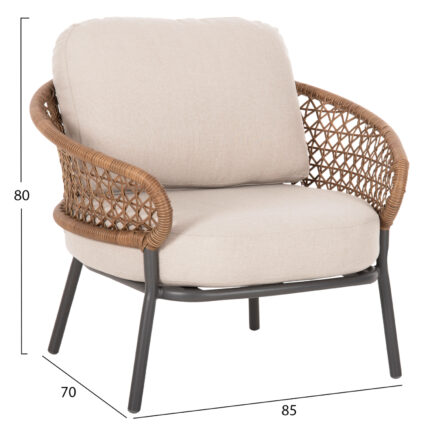 ΠΟΛΥΘΡΟΝΑ HOMAN HM6430.01 ΓΚΡΙ ΜΕΤΑΛΛΟ & TEXTILENE–ΜΠΕΖ P.E.RATTAN 53,5x62x75Υεκ Πολυθρόνα Εξωτερικού Χώρου HOMAN- Γκρι ________________________________________ • Κομψή και πρακτική πολυθρόνα