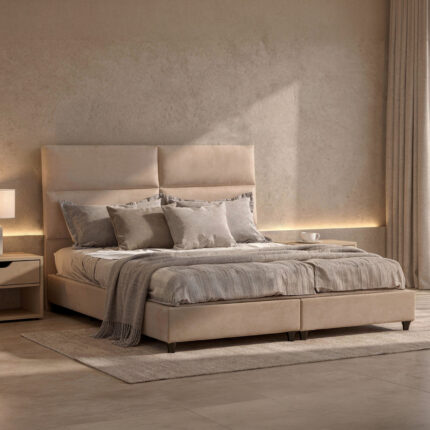 ΚΡΕΒΑΤΙ ΥΠΕΡΔΙΠΛΟ MILO ΑΠΟ ΜΠΕΖ ΥΦΑΣΜΑ HM628.32 ΓΙΑ ΣΤΡΩΜΑ 180×200 εκ. Το κρεβάτι MILO έχει ψηλό κεφαλάρι, επενδυμένο με καπιτονέ