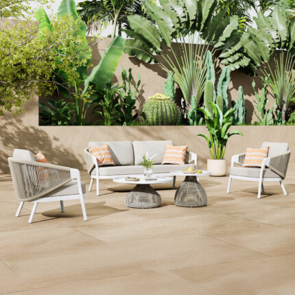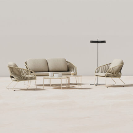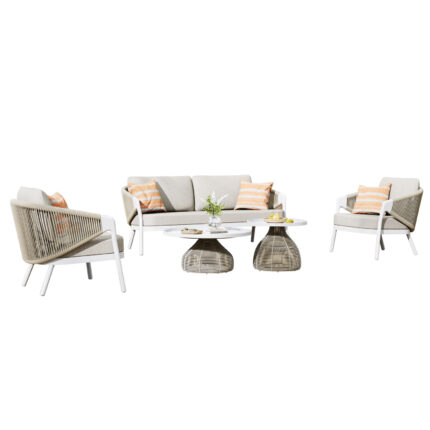ΣΕΤ ΣΑΛΟΝΙ 5ΤΜΧ DRISCOLL ΗM6473.02 IVORY ΑΛΟΥΜΙΝΙΟ–ΜΠΕΖ ΣΧΟΙΝΙ & OLEFIN ΥΦΑΣΜΑ Σετ Σαλονιού Εξωτερικού Χώρου 5τμχ DRISCOLL – Κομψότητα &
