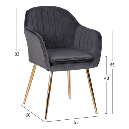ΠΟΛΥΘΡΟΝΑΚΙ SAWYER ΒΕΛΟΥΔΟ ΓΚΡΙ ΜΕ ΧΡΥΣΑ ΠΟΔΙΑ HM8523.01 55Χ60Χ83Υ εκ. Η πολυθρόνα SAWYER είναι επενδυμένη με ύφασμα βελούδο σε γκρι