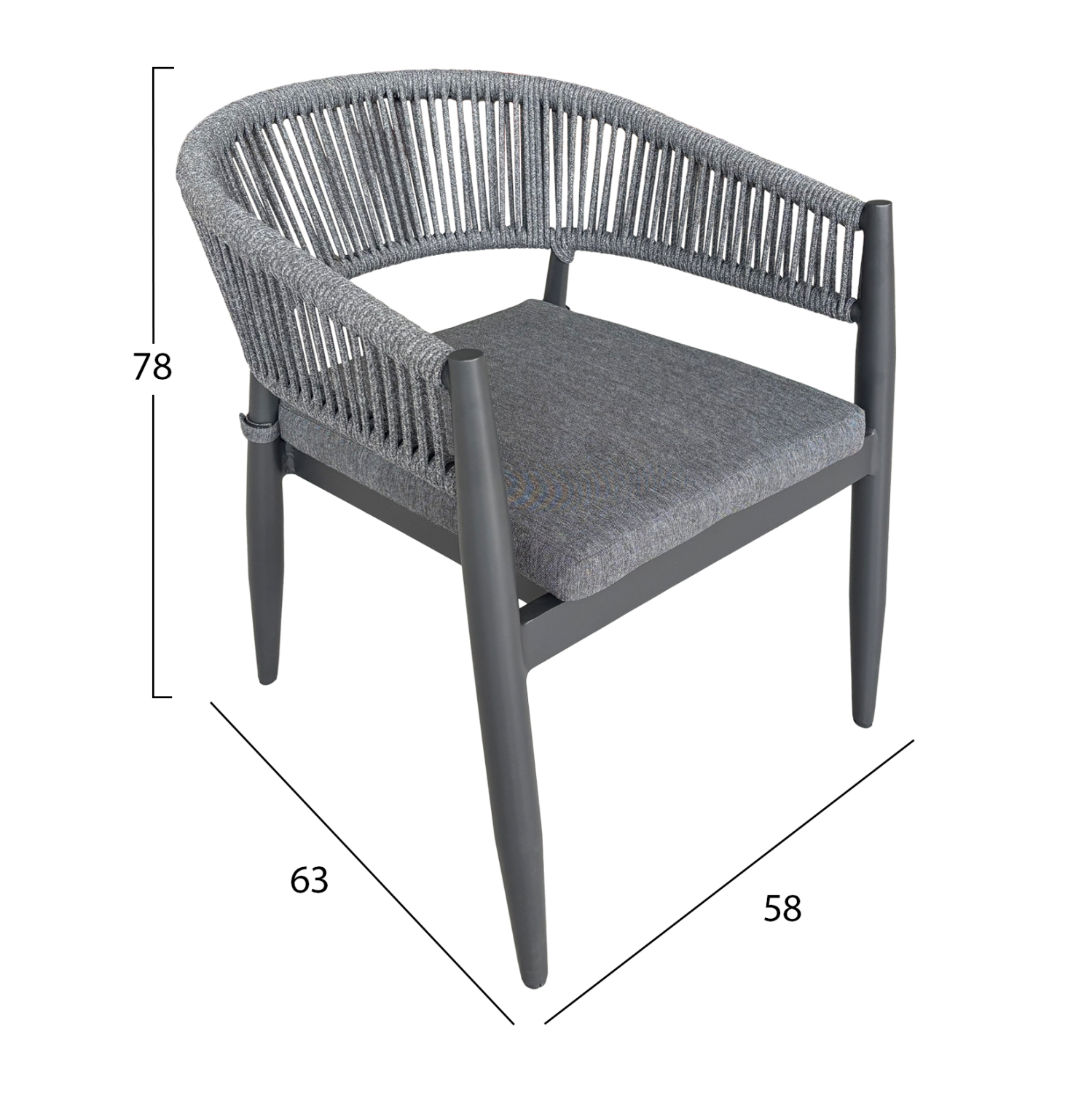 • Ημικυκλική πλάτη από σχοινί σε ΑΝΘΡΑΚΙ απόχρωση για άνεση και ιδιαίτερη αισθητική.