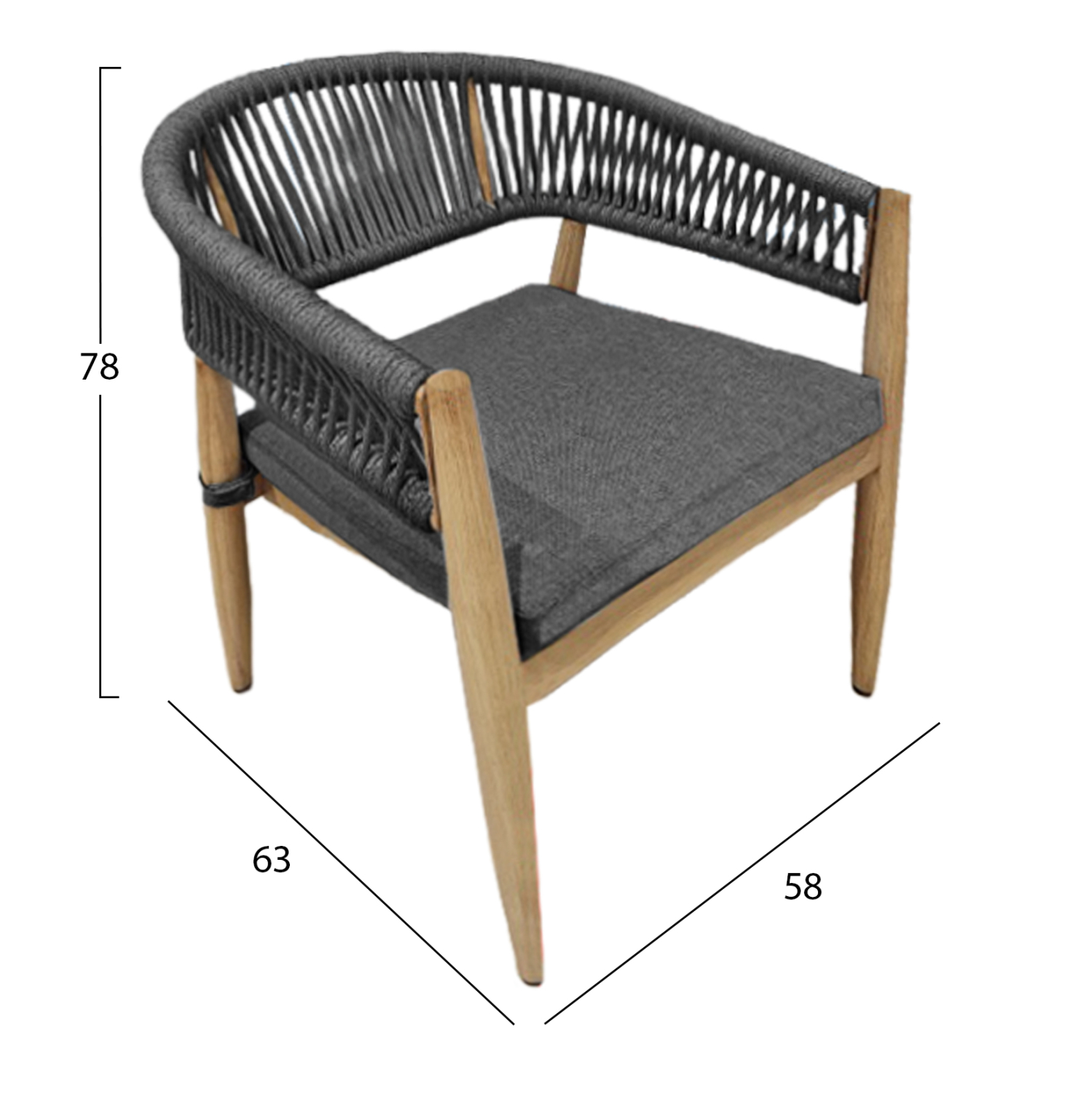 • Ημικυκλική πλάτη από σχοινί σε ΑΝΘΡΑΚΙ απόχρωση για άνεση και ιδιαίτερη αισθητική.