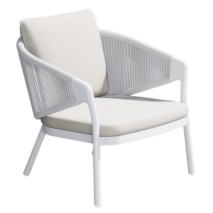 Πολυθρόνα Lounge Εξωτερικού Χώρου ΧΑΝΤΙΟΝ από Αλουμίνιο με Σχοινί & Μαξιλάρια–ΛΕΥΚΟ