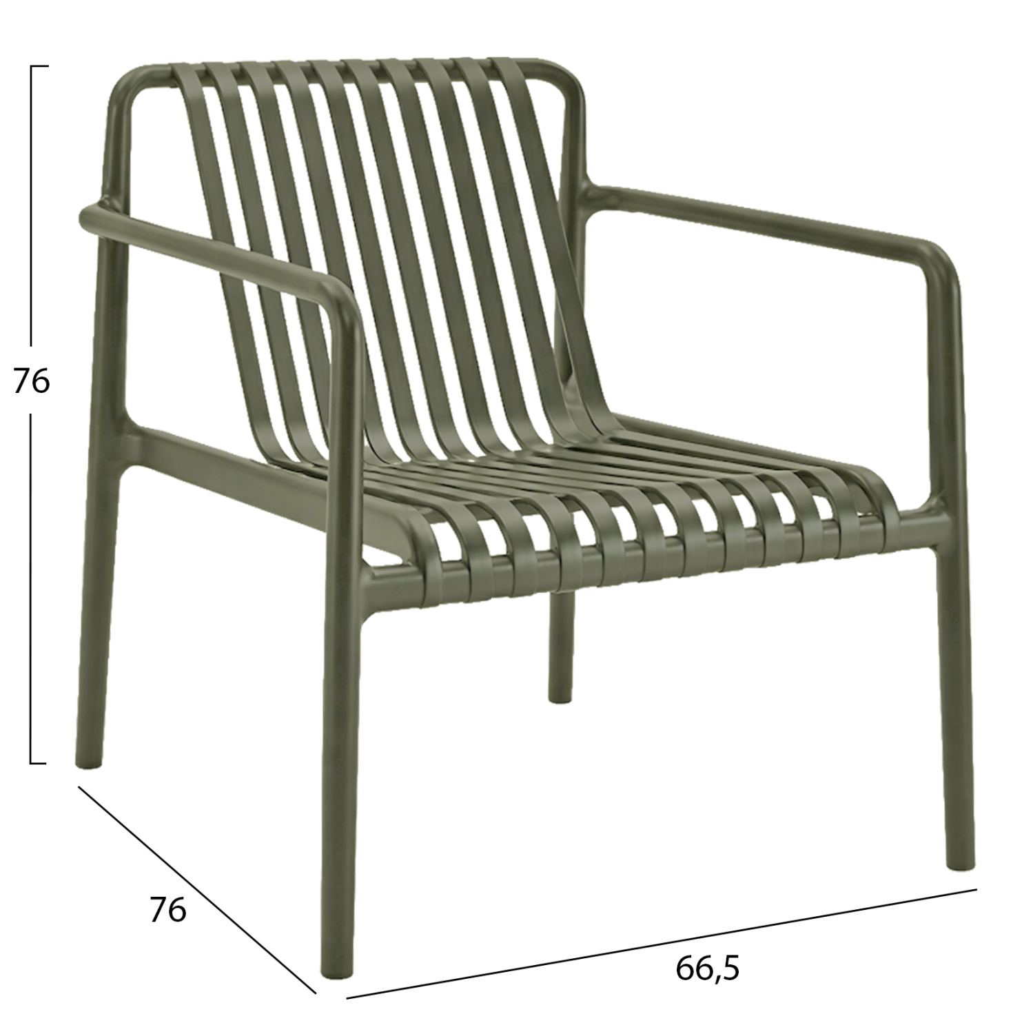 Η MALEN είναι μια σύγχρονη lounge πολυθρόνα εξωτερικού χώρου με χαμηλό και αναπαυτικό ύψος καθίσματος που προσκαλεί σε στιγμές χαλάρωσης. Ο μίνιμαλ σχεδιασμός της σε OLIVE GREEN απόχρωση κοσμεί κάθε βεράντα, κήπο ή επαγγελματικό χώρο φιλοξενίας, προσφέροντας καθαρές γραμμές και διαχρονική αισθητική. Ιδανική επιλογή για όσους αναζητούν ανθεκτικότητα, πρακτικότητα και κομψότητα σε ένα ενιαίο σύνολο.