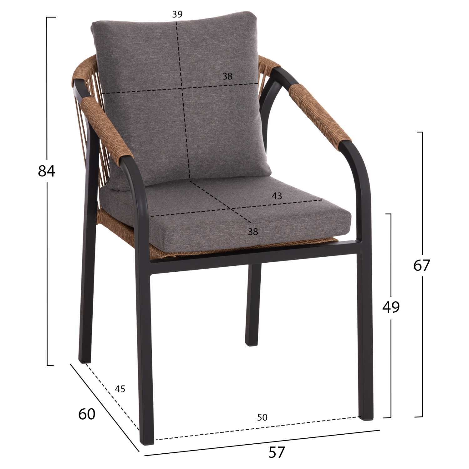 ΠΟΛΥΘΡΟΝΑ MAERLY HM6051.13 ΑΝΘΡΑΚΙ ΑΛΟΥΜΙΝΙΟ & ΜΑΞΙΛΑΡΙΑ-ΚΑΦΕ P.E.RATTAN 57x60x84Υεκ.