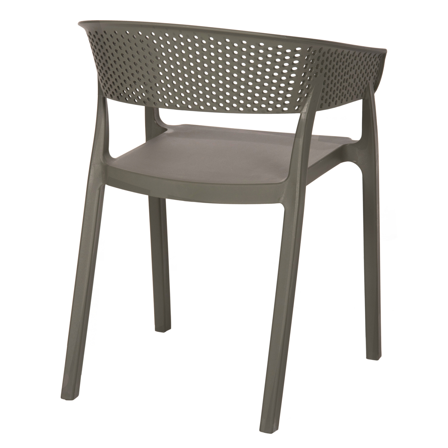 Πολυθρόνα πολυπροπυλενίου σε DARK OLIVE χρώμα. Ιδανική πρόταση για χρήση σε εξωτερικούς χώρους, είτε επαγγελματικούς (χώροι δεξιώσεων, εταιρείες catering, κλπ.) είτε για το σπίτι. Η πολυθρόνα αποτελείται από ένα λείο κάθισμα και μια ημικυκλική, ανεξάρτητη και «τρυπητή» πλάτη και μπράτσα. Είναι πανέμορφη και θα αναβαθμίσει αισθητικά κάθε εξωτερικό χώρο.