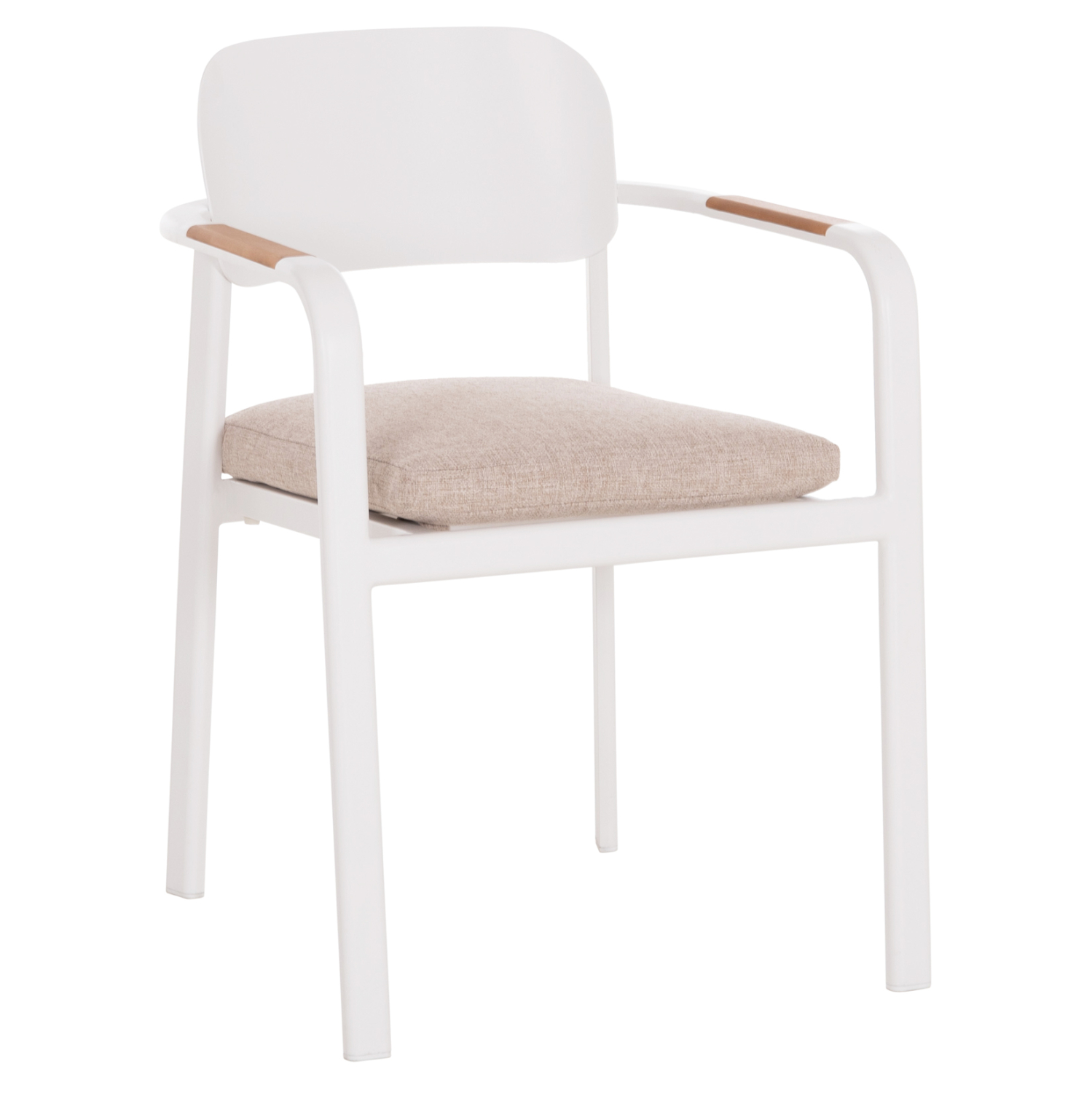 Η πολυθρόνα εξωτερικού χώρου ELARA συνδυάζει μοντέρνα αισθητική, ανθεκτικά υλικά και πρακτική λειτουργικότητα. Ο σκελετός από αλουμίνιο σε ΛΕΥΚΟ χρώμα προσφέρει υψηλή αντοχή στις εξωτερικές συνθήκες, ενώ τα διακοσμητικά τελειώματα από ξύλο teak στα μπράτσα προσθέτουν φυσική και ζεστή πινελιά. Το μαξιλάρι καθίσματος διαθέτει κάλυμμα OLEFIN σε ΜΠΕΖ χρώμα και αφρό 25D για άνεση κατά τη χρήση. Στοιβαζόμενη για εύκολη αποθήκευση.