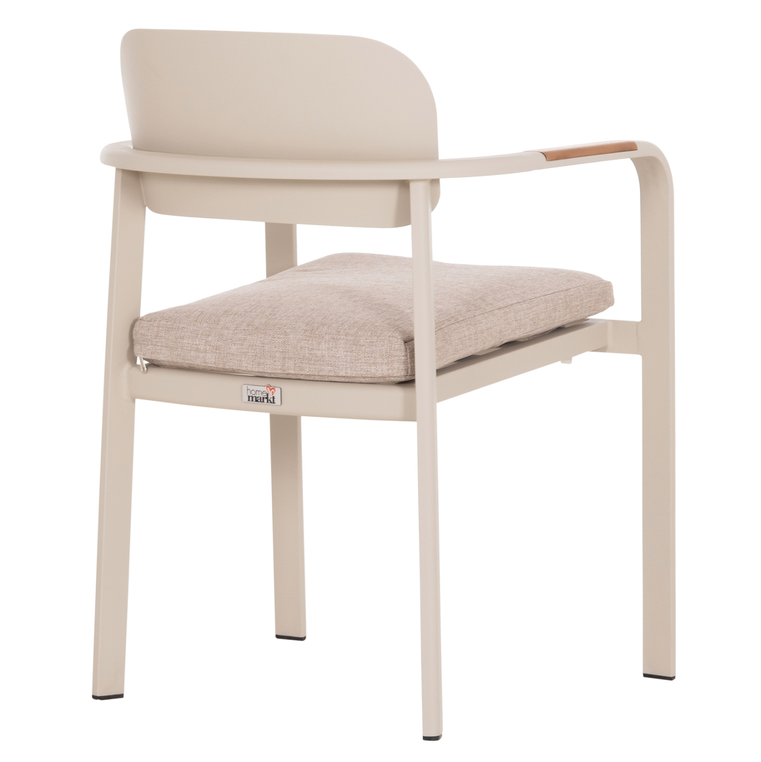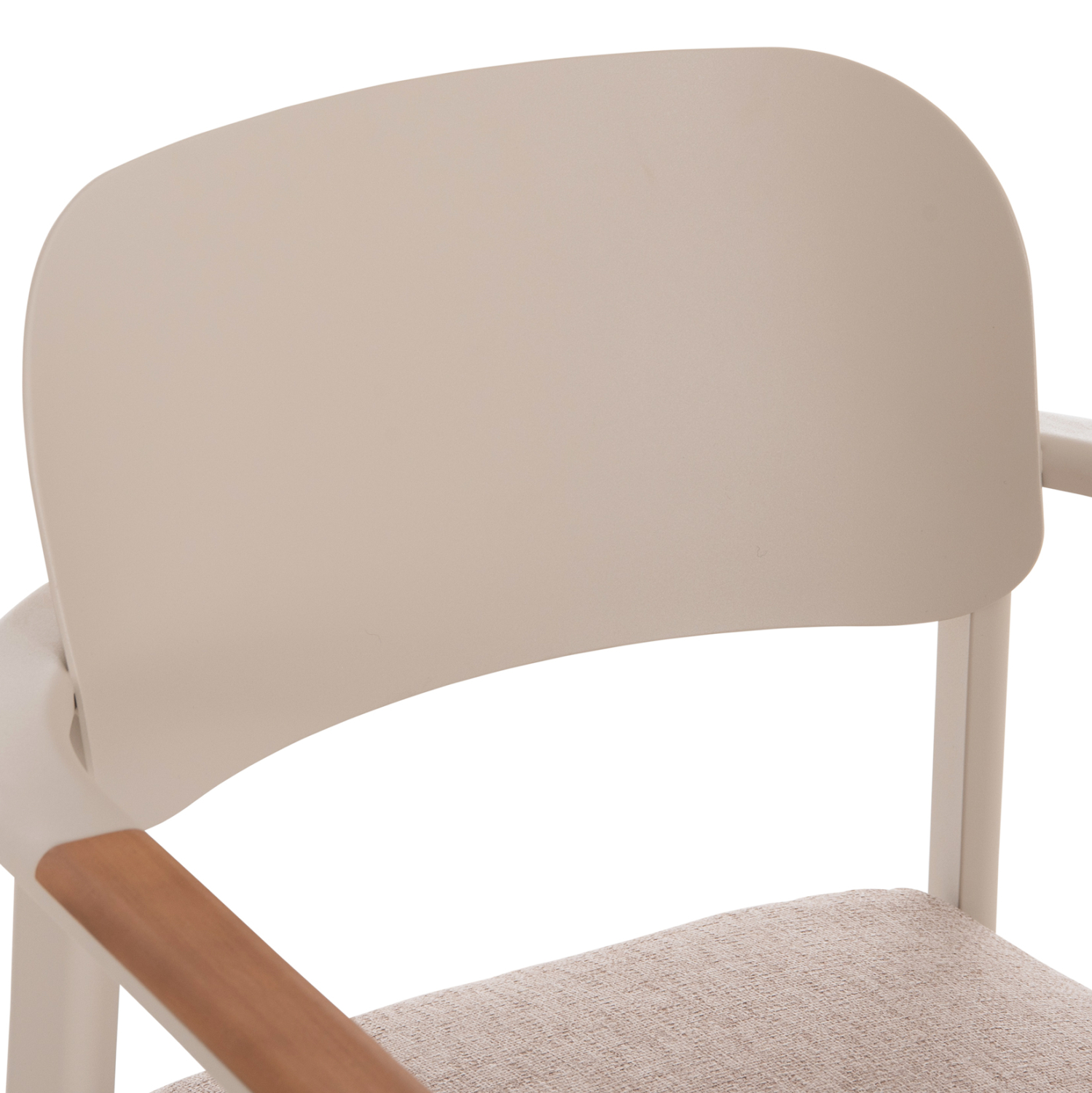 Η πολυθρόνα εξωτερικού χώρου ELARA συνδυάζει μοντέρνα αισθητική, ανθεκτικά υλικά και πρακτική λειτουργικότητα. Ο σκελετός από αλουμίνιο σε ΜΠΕΖ χρώμα προσφέρει υψηλή αντοχή στις εξωτερικές συνθήκες, ενώ τα διακοσμητικά τελειώματα από ξύλο teak στα μπράτσα προσθέτουν φυσική και ζεστή πινελιά. Το μαξιλάρι καθίσματος διαθέτει κάλυμμα OLEFIN σε ΜΠΕΖ χρώμα και αφρό 25D για άνεση κατά τη χρήση. Στοιβαζόμενη για εύκολη αποθήκευση.