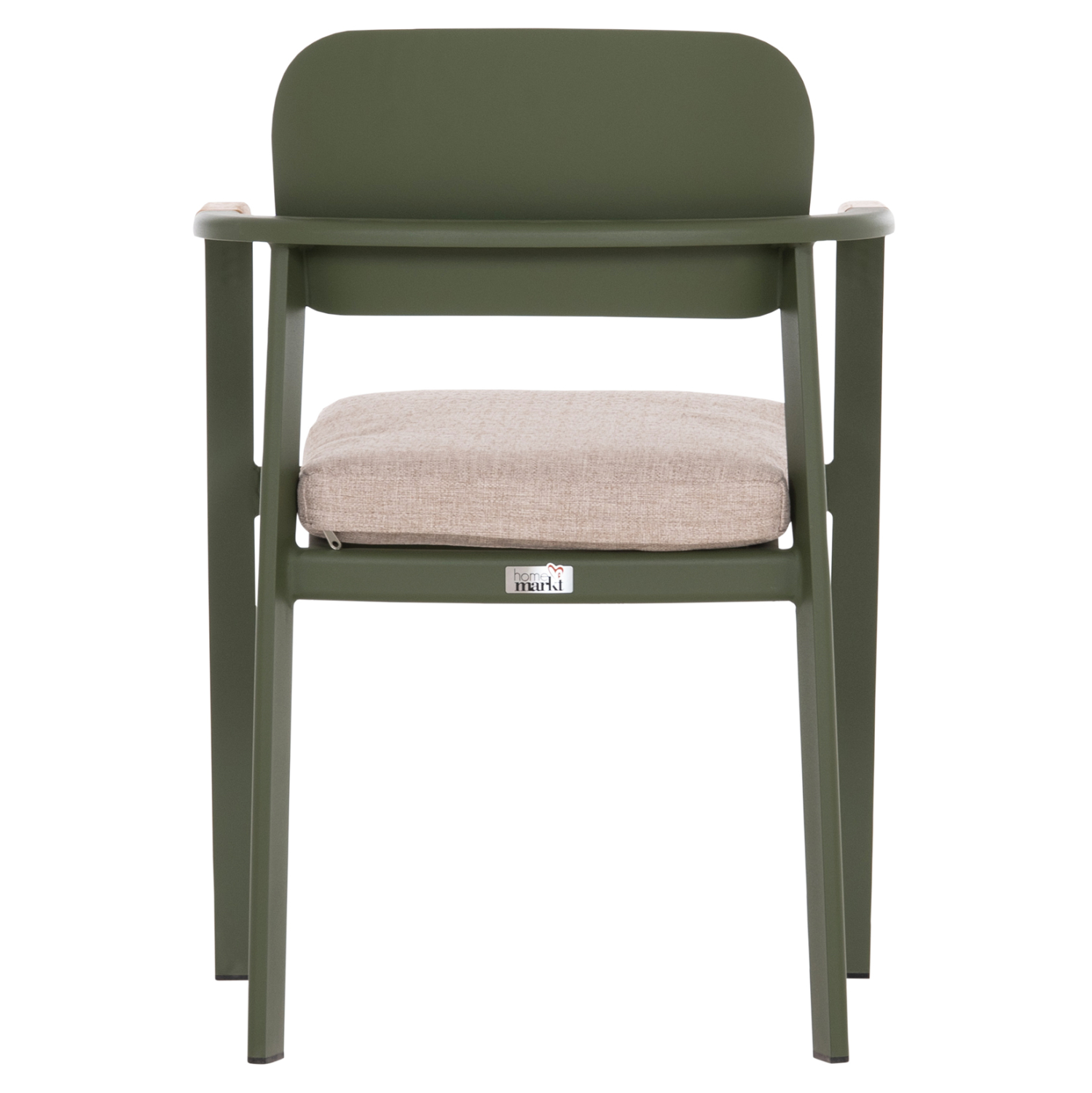 Η πολυθρόνα εξωτερικού χώρου ELARA συνδυάζει μοντέρνα αισθητική, ανθεκτικά υλικά και πρακτική λειτουργικότητα. Ο σκελετός από αλουμίνιο σε ΠΡΑΣΙΝΟ χρώμα προσφέρει υψηλή αντοχή στις εξωτερικές συνθήκες, ενώ τα διακοσμητικά τελειώματα από ξύλο teak στα μπράτσα προσθέτουν φυσική και ζεστή πινελιά. Το μαξιλάρι καθίσματος διαθέτει κάλυμμα OLEFIN σε ΜΠΕΖ χρώμα και αφρό 25D για άνεση κατά τη χρήση. Στοιβαζόμενη για εύκολη αποθήκευση.