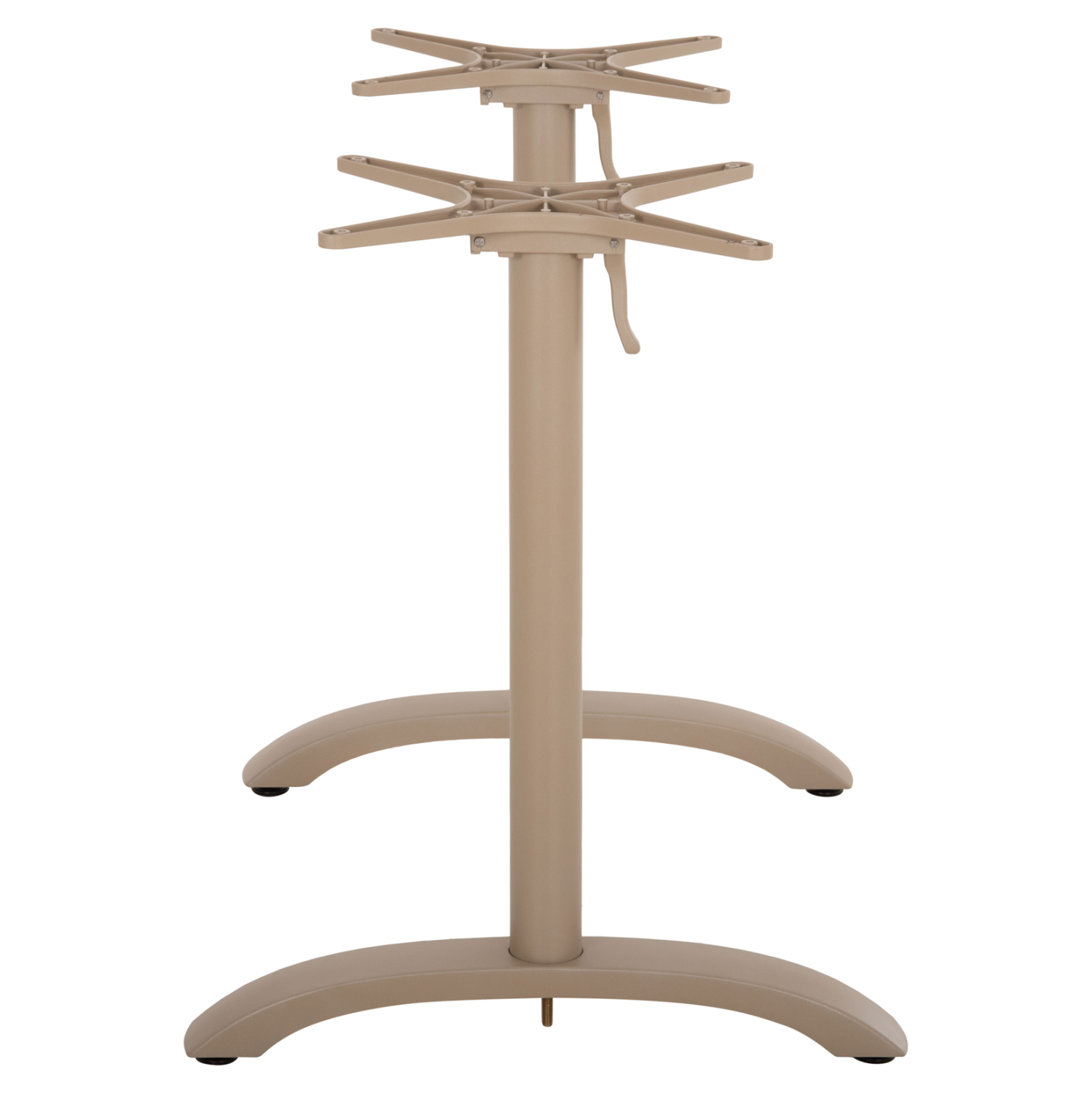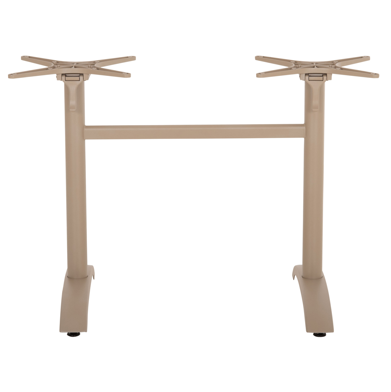 Η ΗΜ468.25 είναι βάση/πόδια για τραπέζι σε ΚΑΠΟΥΤΣΙΝΟ ΜΑΤ χρώμα. Αυτή η βάση είναι ΑΛΟΥΜΙΝΙΟΥ με δύο κολώνες (πόδια) που στηρίζονται σε αντίστοιχες αψίδες. Η επιφάνεια που θα επιλέξετε στηρίζεται σε δύο «σταυρούς», οι οποίοι μάλιστα είναι αναδιπλούμενοι για ευκολία κατά την αποθήκευση! Επίσης, στο κάτω μέρος των ποδιών/αψίδων διαθέτει ρυθμιστές ύψους (ρεγουλατόρους). Ιδανική πρόταση για συνδυασμό με επιφάνειες σχεδόν κάθε είδους, όπως βερσαλίτες, HPL, MDF, κτλ.